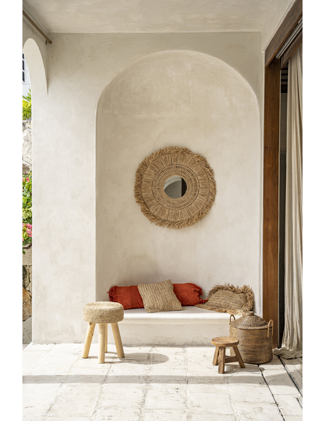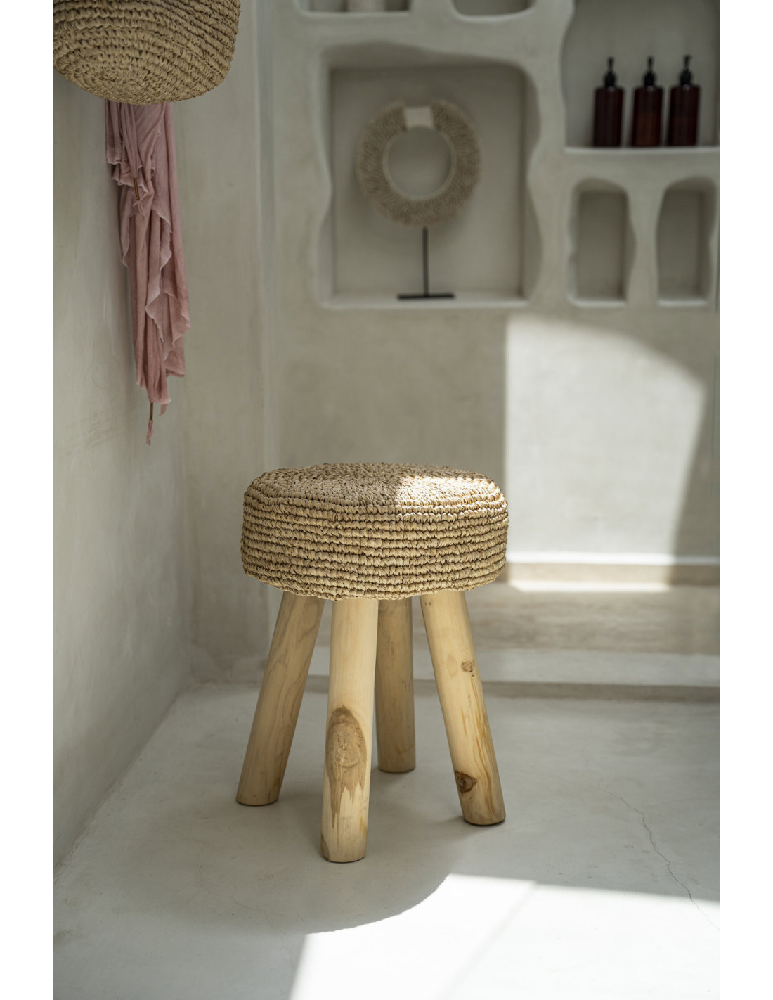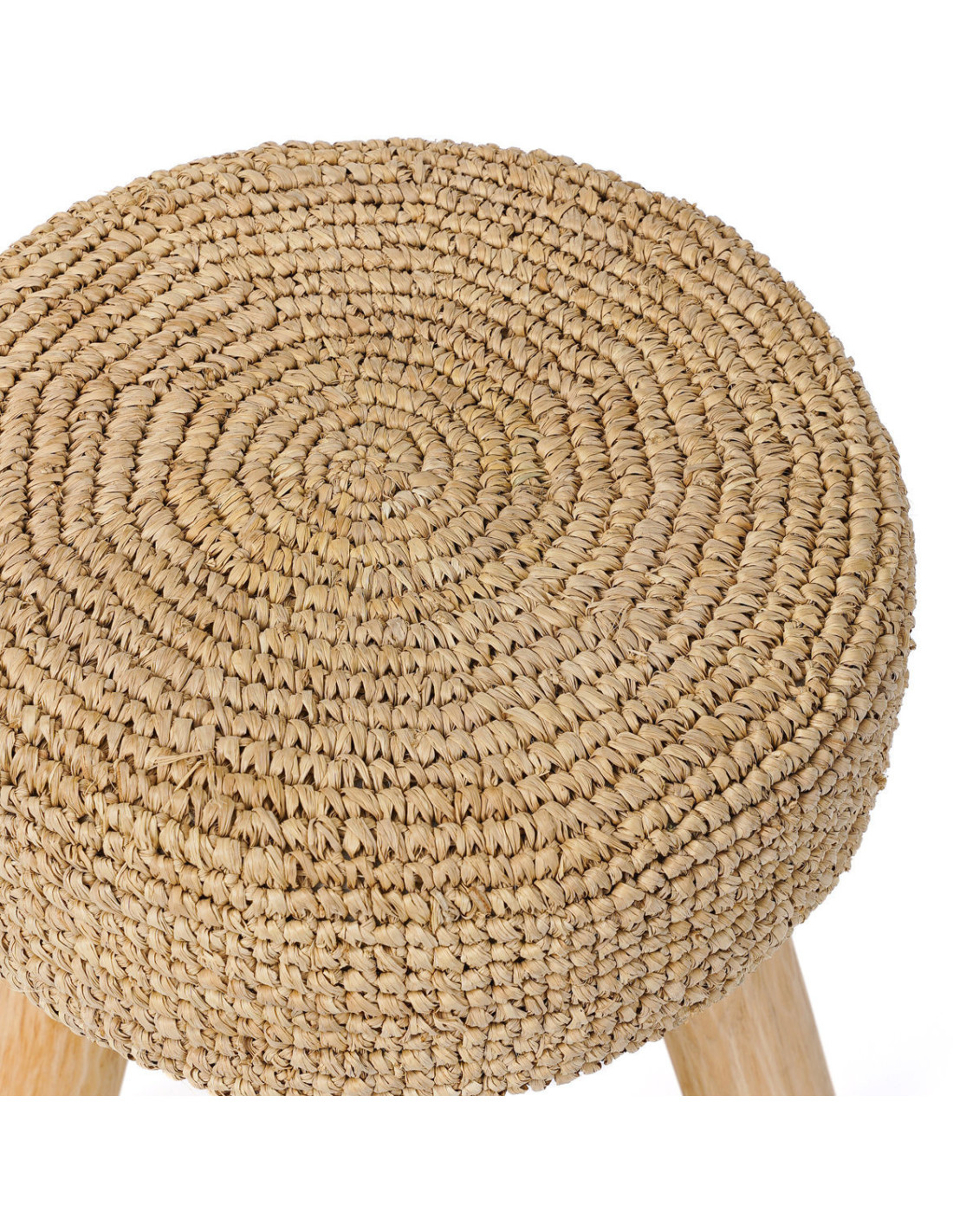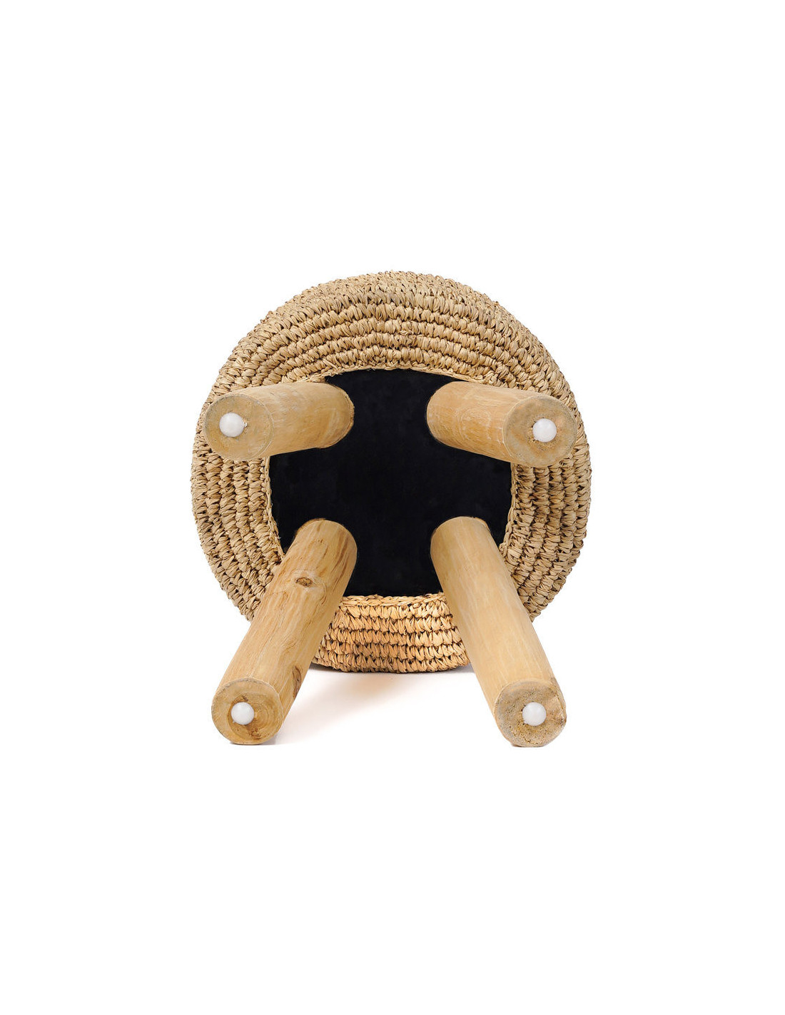 Tabouret Bohème chic Rond en Bois de teck Raphia Naturel The Raphia