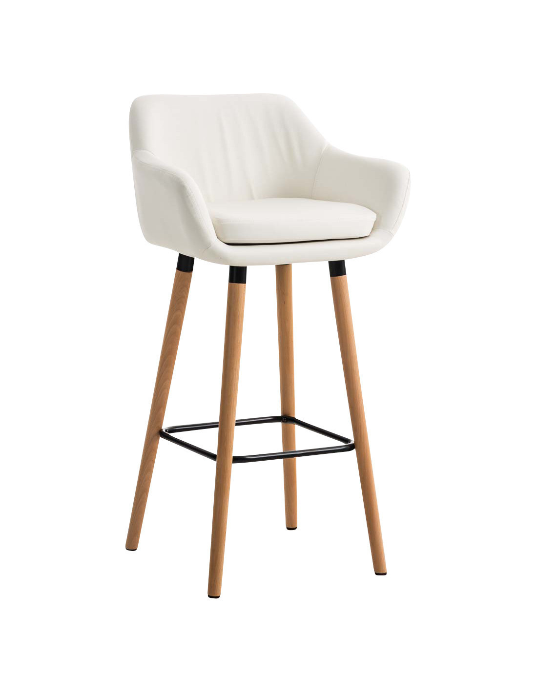 Tabouret de bar scandinave en Polyuréthane Blanc Bois de hêtre Naturel Norvyn