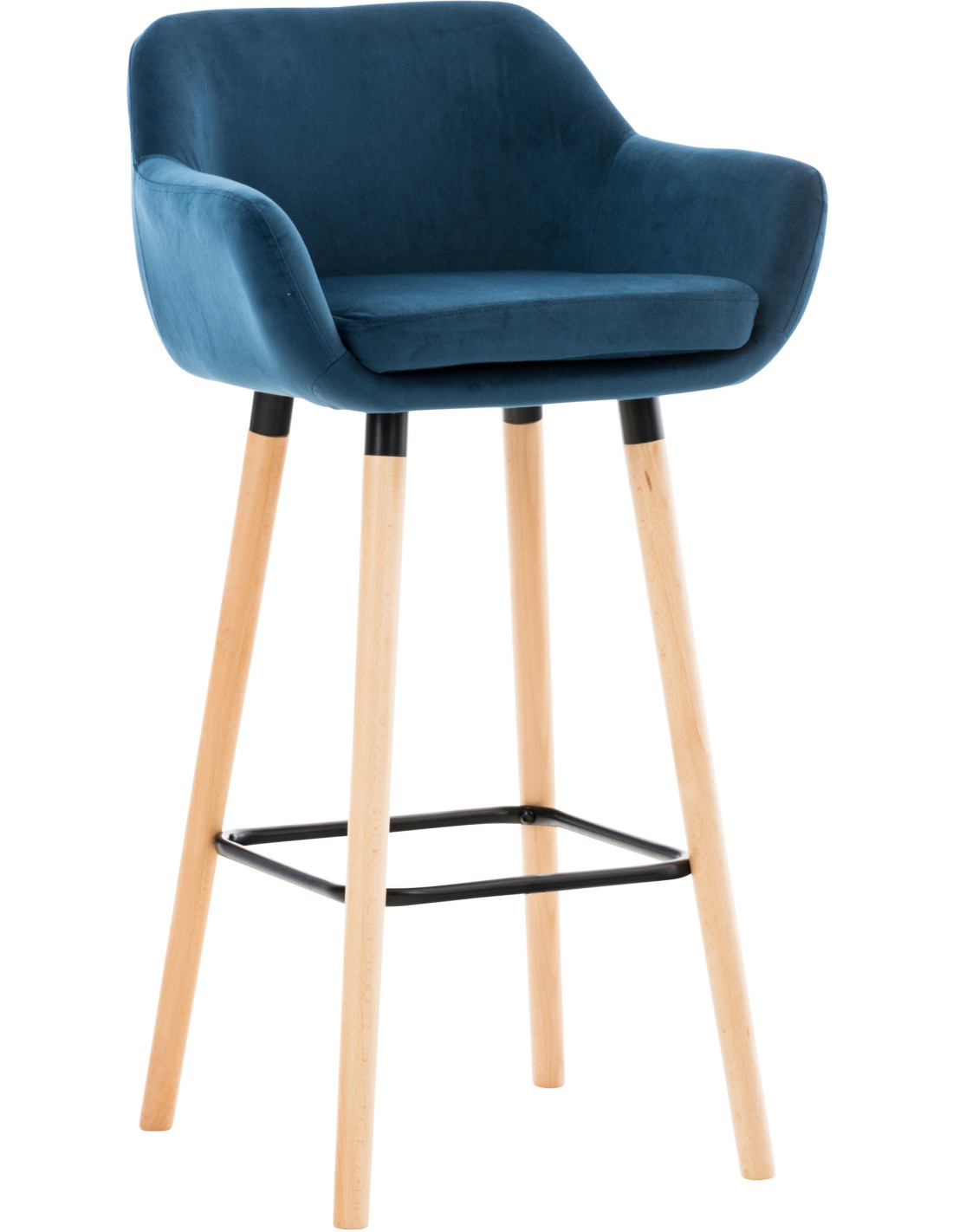 Tabouret de bar scandinave en Velours Bleu Bois de hêtre Naturel Norvyn