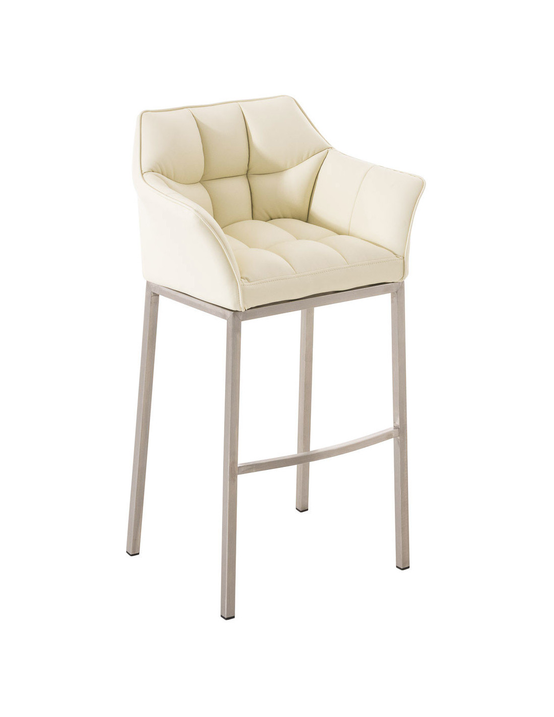 Tabouret de bar moderne en Polyuréthane Blanc crème Métal Argenté Brillant Daryo