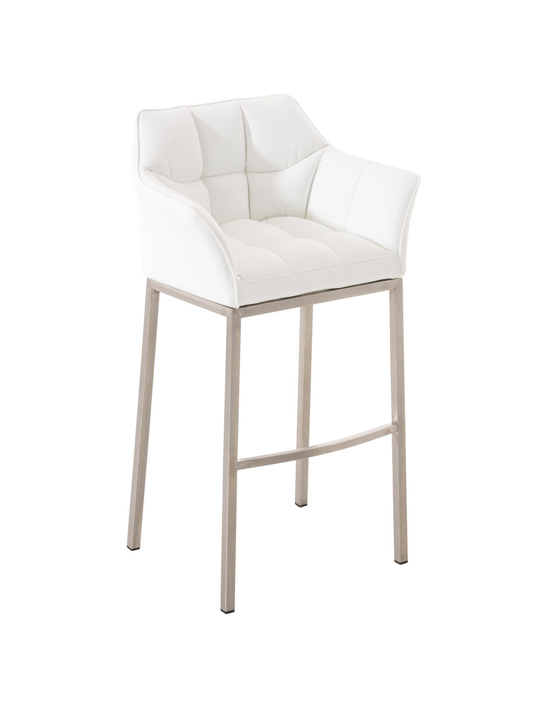 Tabouret de bar moderne en Polyuréthane Blanc Métal Argenté Brillant Daryo