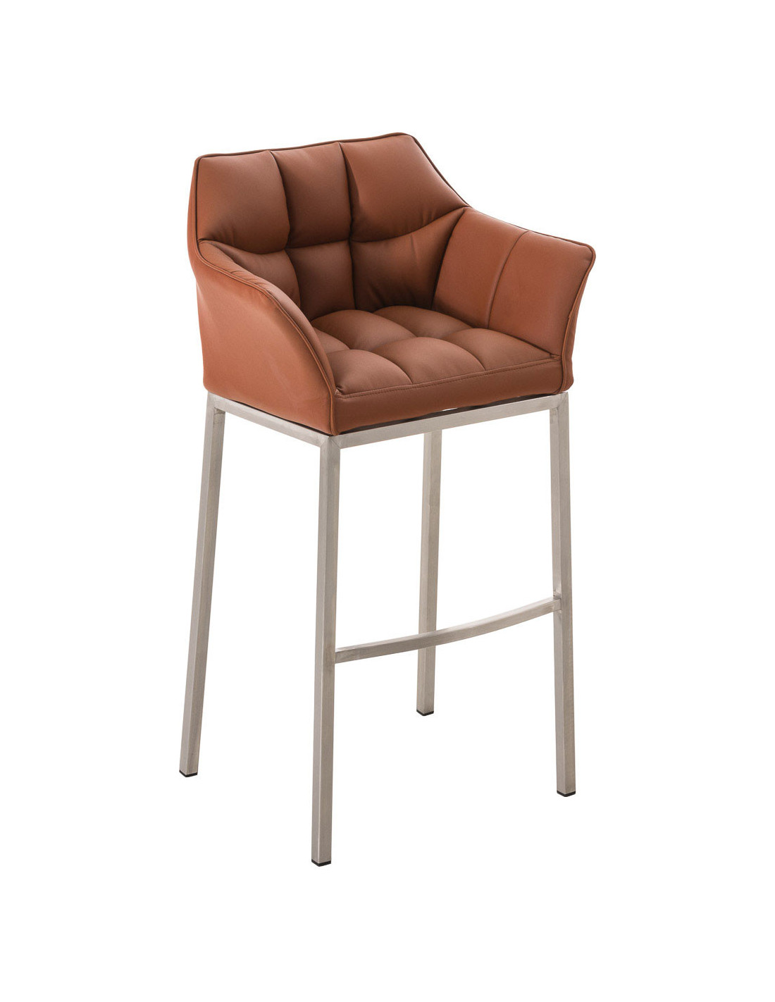 Tabouret de bar moderne en Polyuréthane Marron clair Métal Argenté Brillant Daryo
