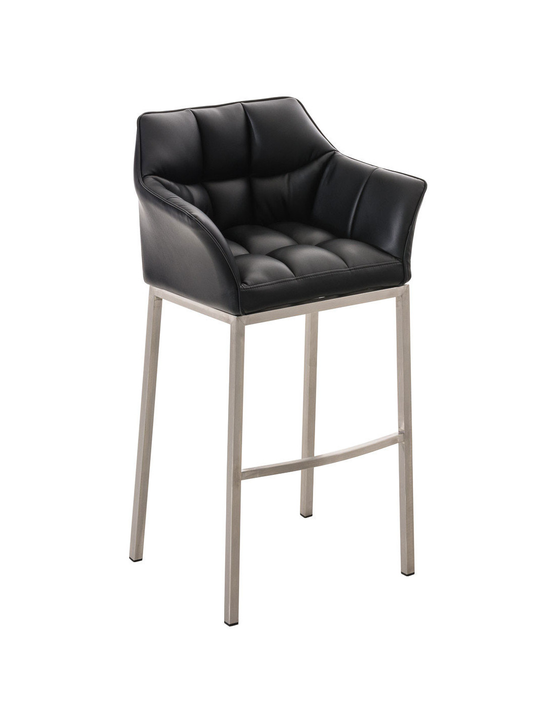 Tabouret de bar moderne en Polyuréthane Noir Métal Argenté Brillant Daryo
