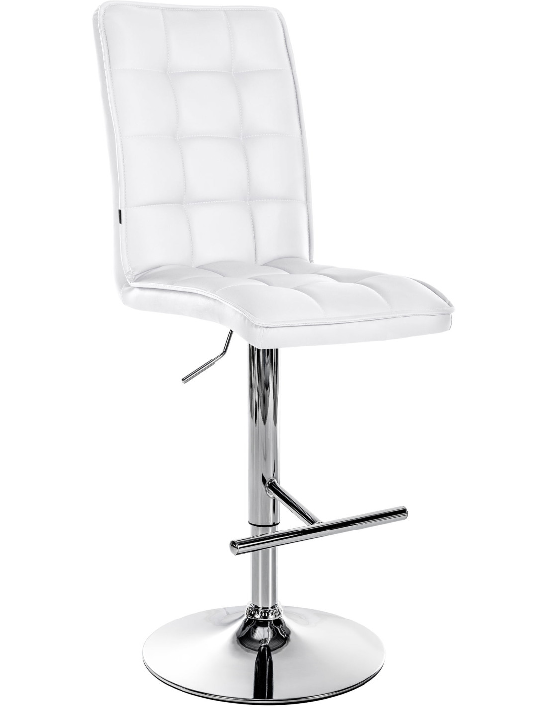 Tabouret de bar Dossier haut en Polyuréthane Blanc Métal Argenté Liam - 1