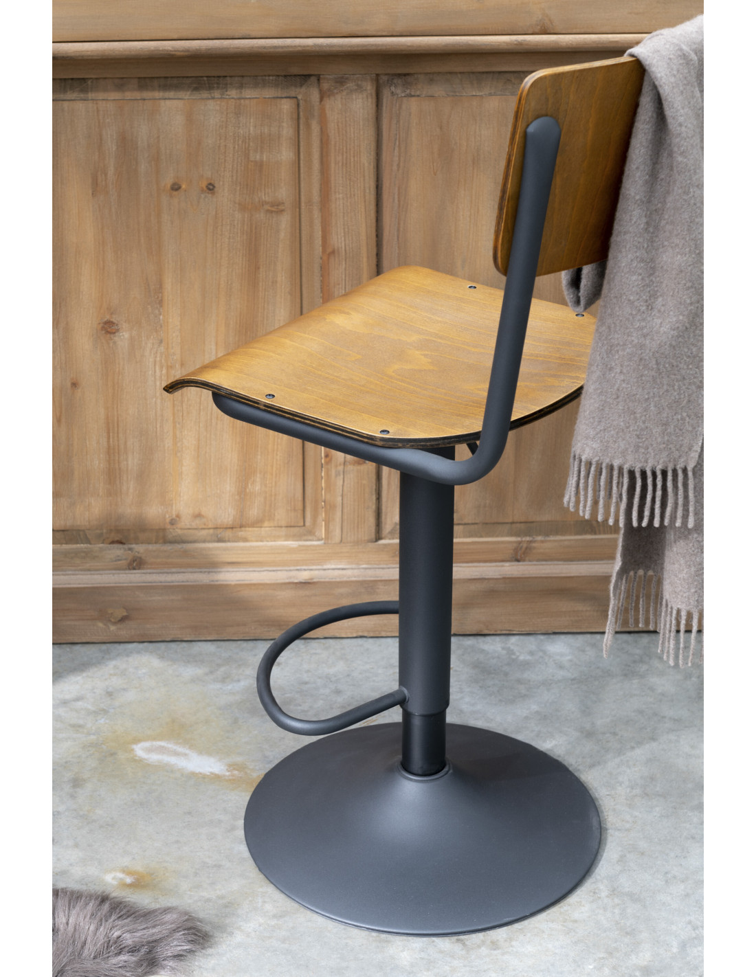 Tabouret de bar avec dossier Toto en Bois de peuplier Naturel Métal Noir