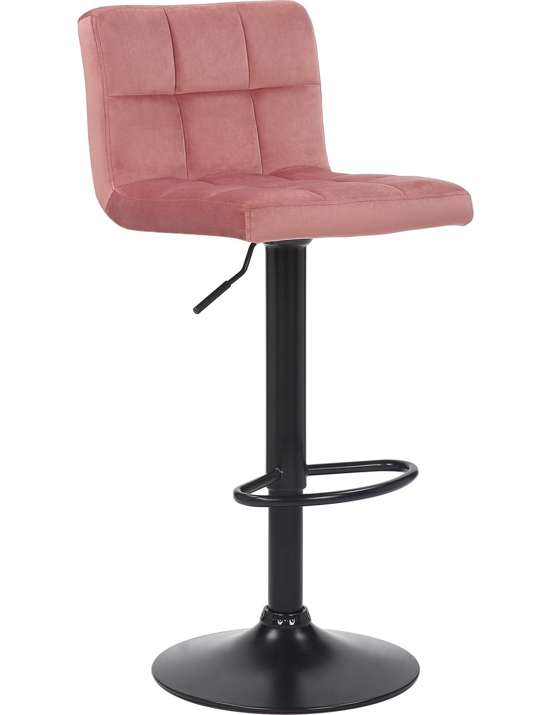 Tabouret de bar moderne matelassé en Velours Rose Métal Noir Willy