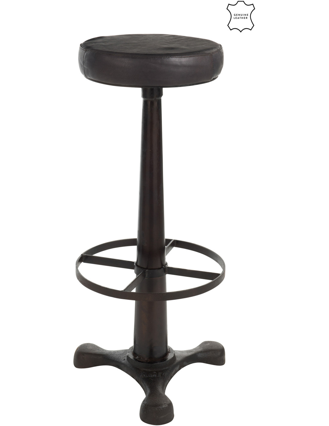 Tabouret de bar Bistro en Cuir véritable Noir Métal Noir - 1