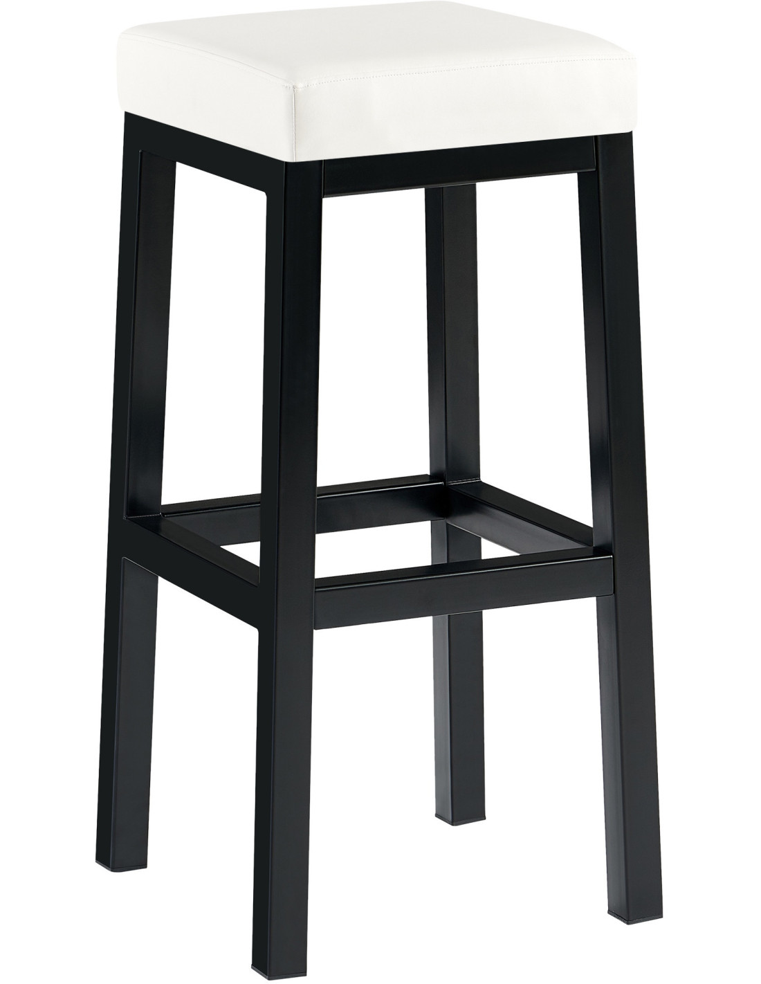 Tabouret de bar carré Hauteur 85 cm en Polyuréthane Blanc Métal Noir Havria