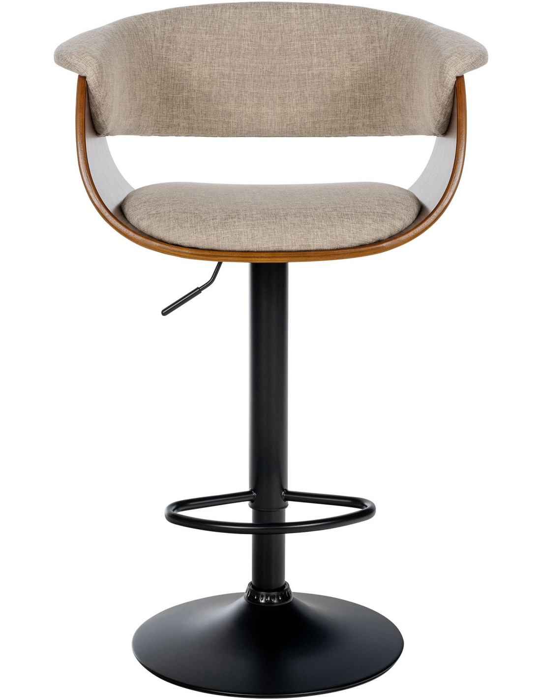 Tabouret de bar design en Tissu Blanc crème Bois Marron noyer Métal Noir Nordyna - 1