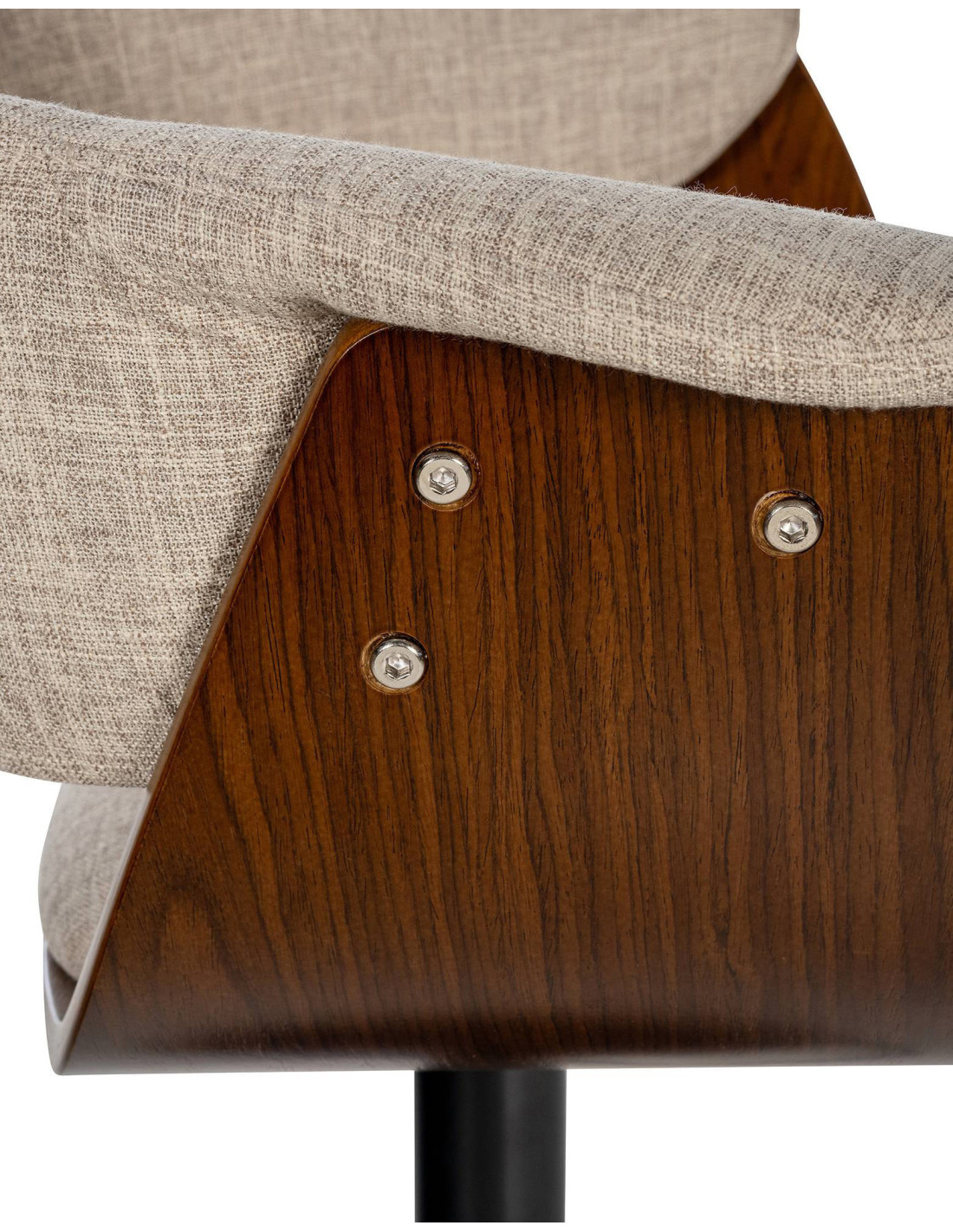 Tabouret de bar design en Tissu Blanc crème Bois Marron noyer Métal Noir Nordyna - 5