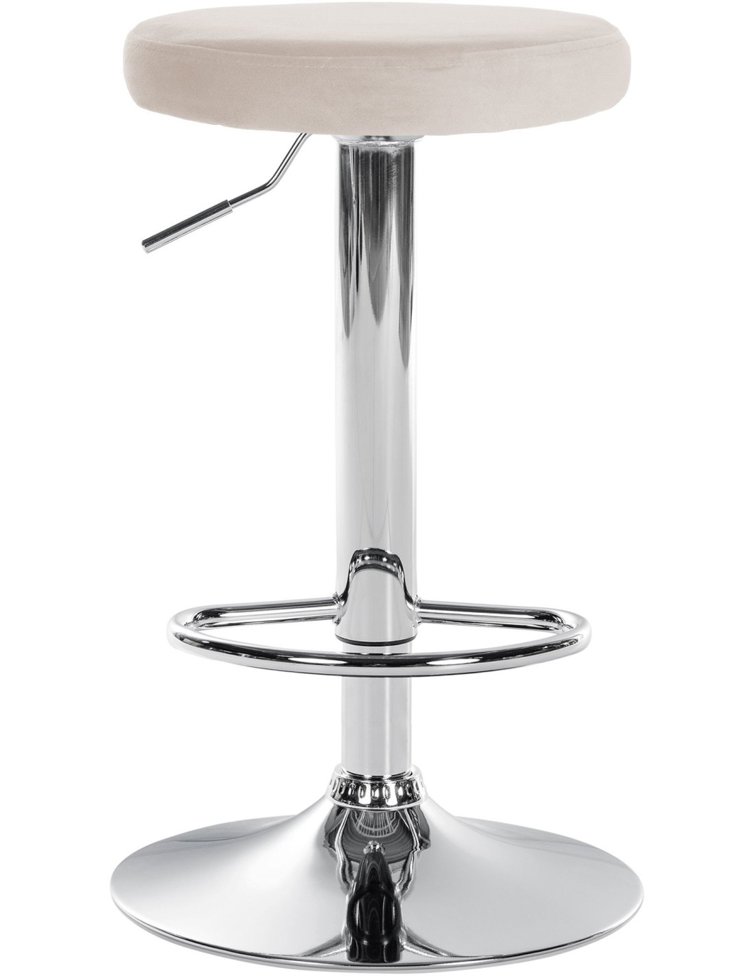 Tabouret de bar design pivotant en Velours Blanc crème Métal Chromé Brillant Tao