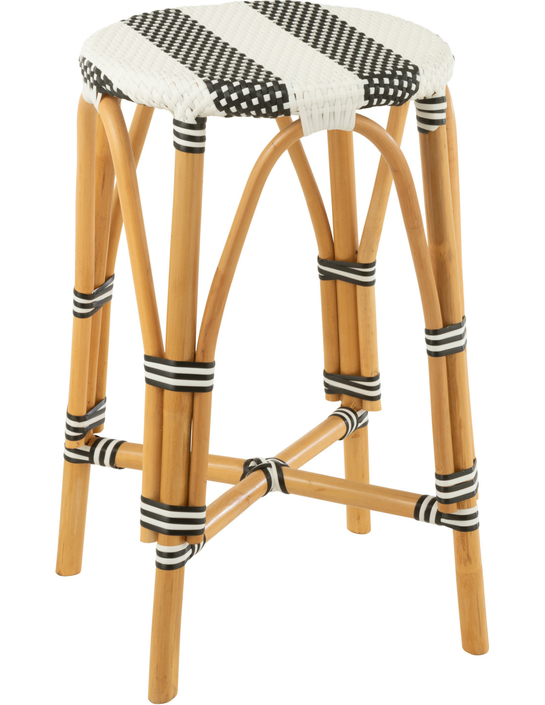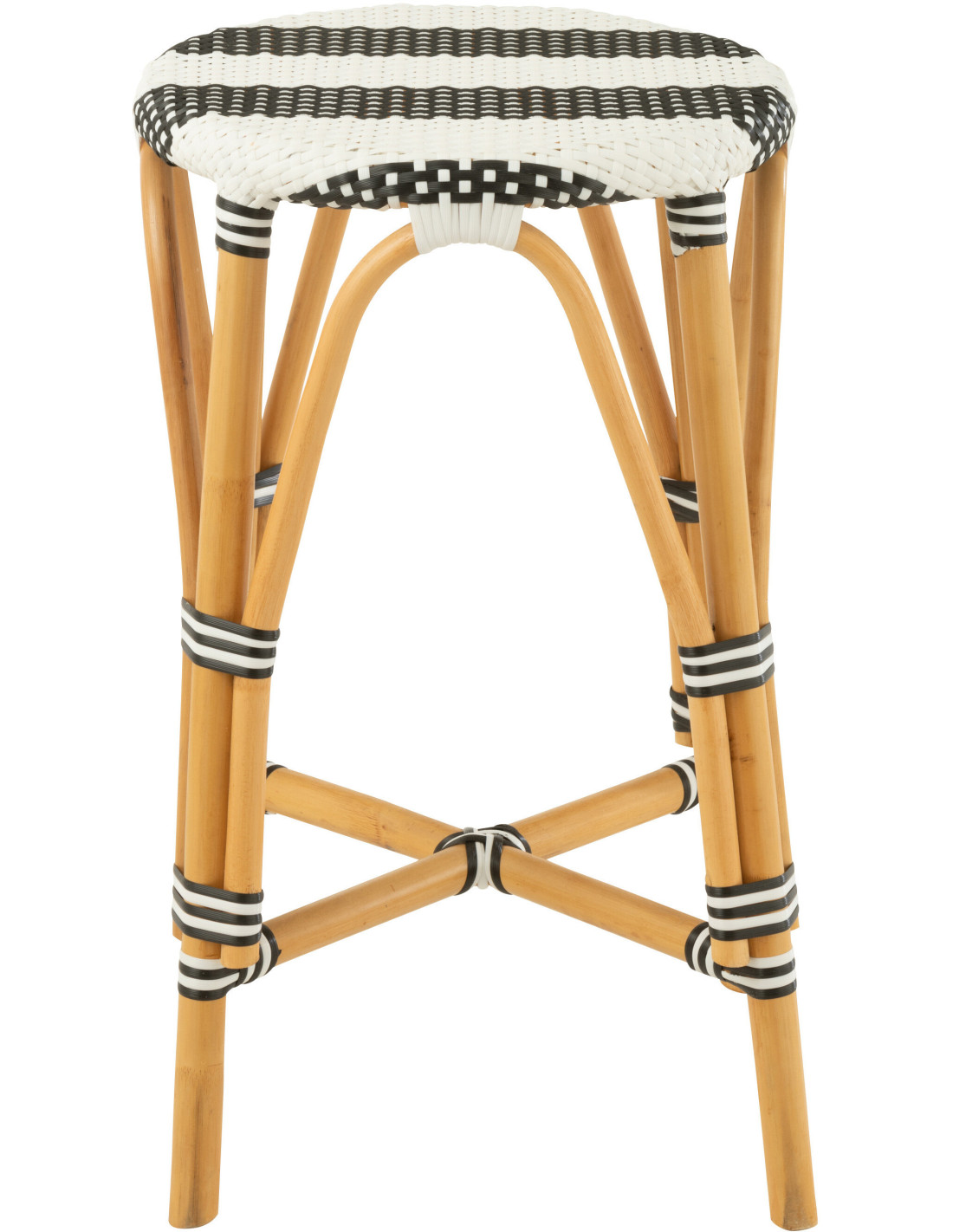 Tabouret de bar extérieur rond Hauteur 65 cm en Rotin Naturel Plastique Noir Blanc Live