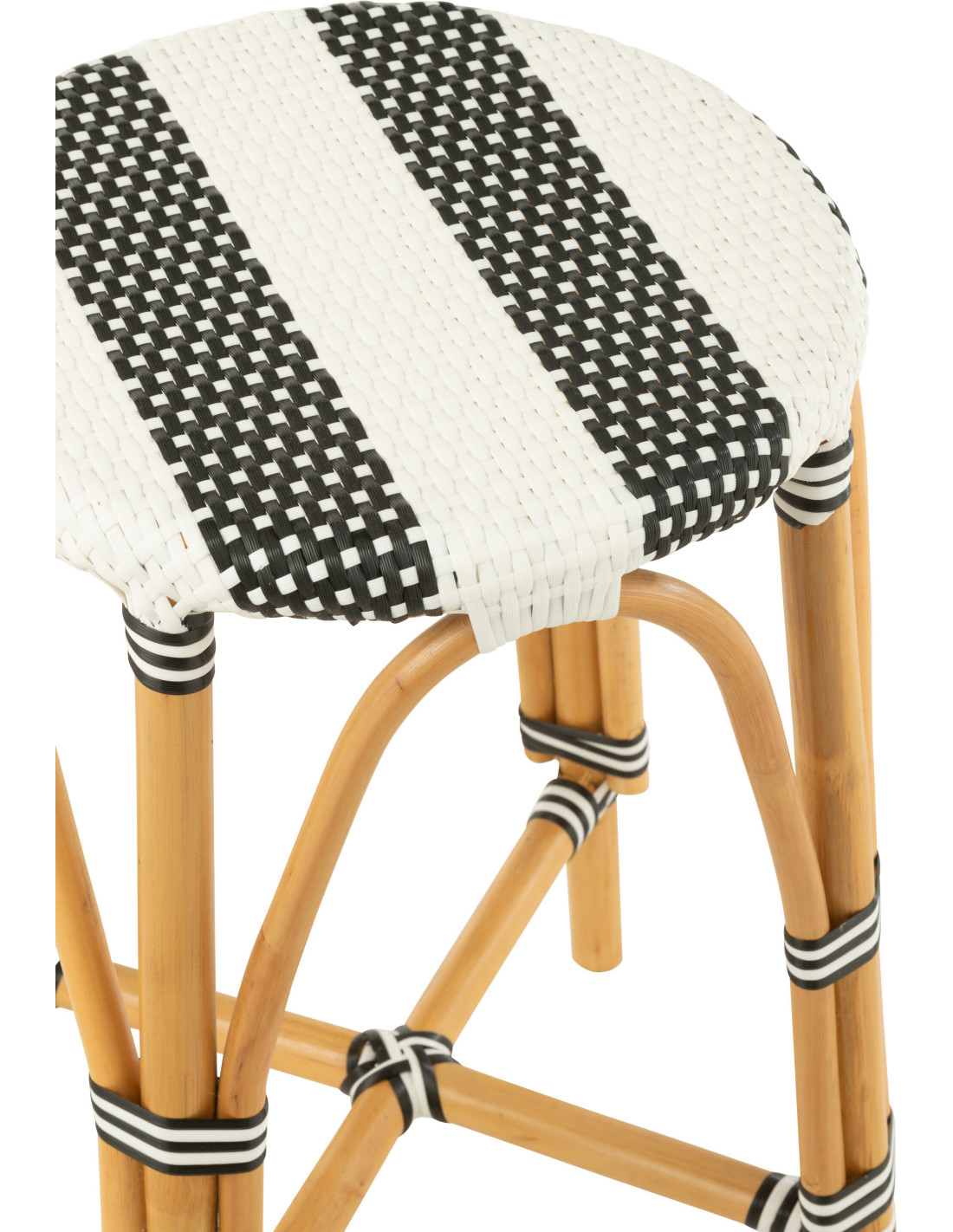 Tabouret de bar extérieur rond Hauteur 65 cm en Rotin Naturel Plastique Noir Blanc Live - 4