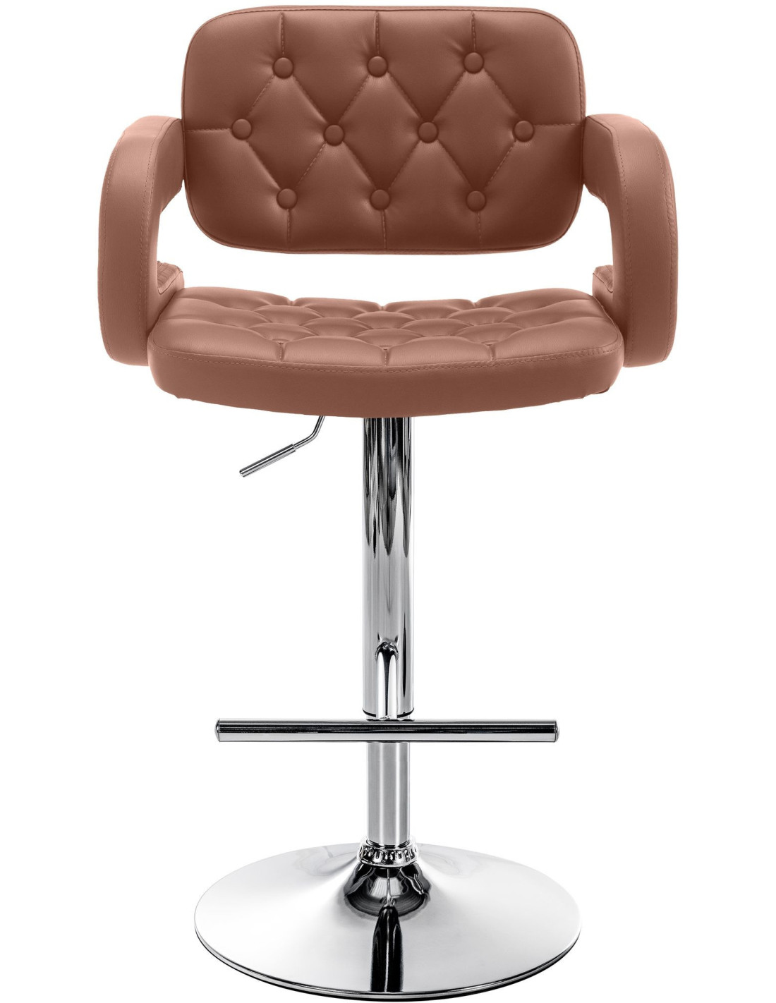 Tabouret de bar haut de gamme en Polyuréthane Marron cognac Métal Argenté Nyvris