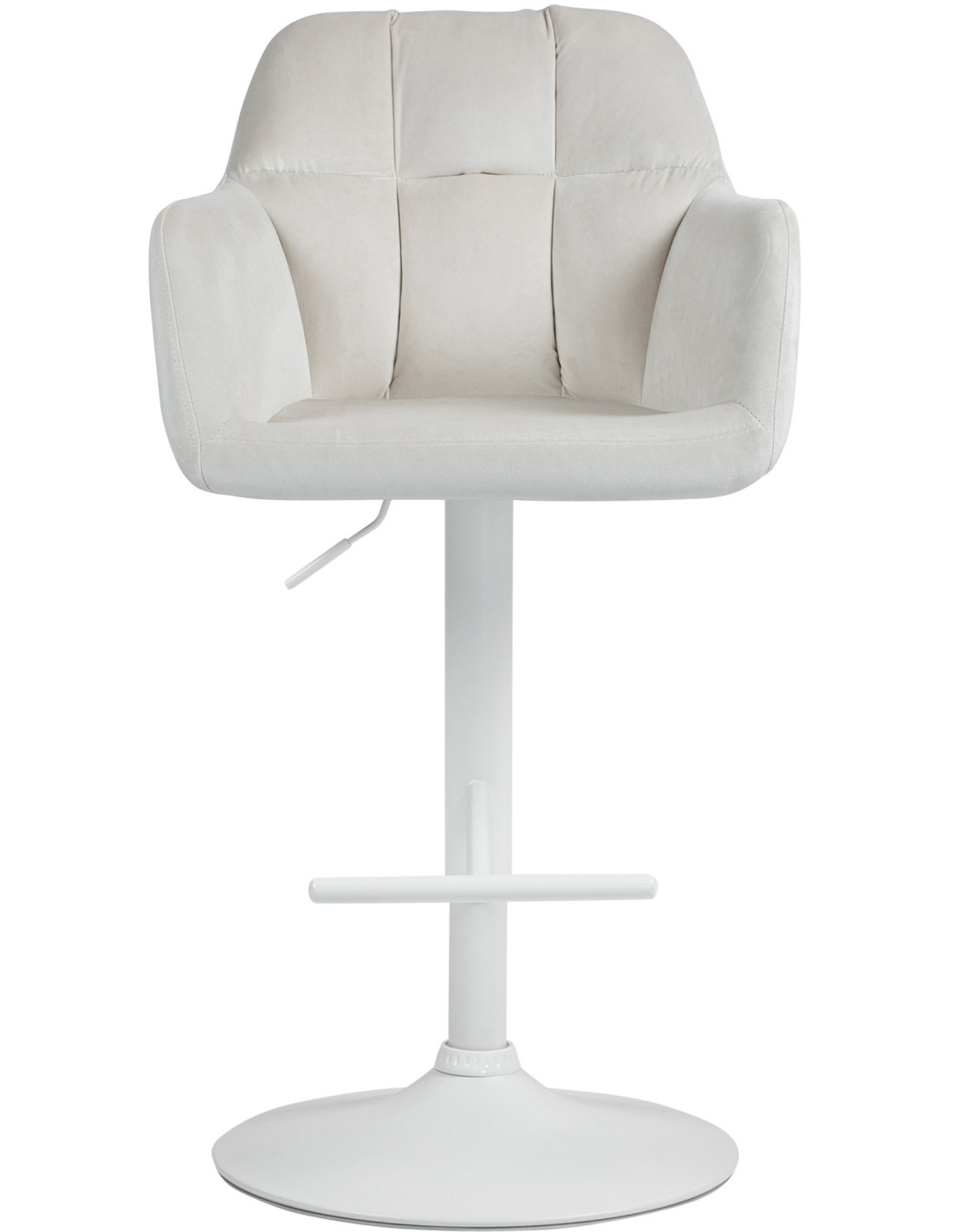 Tabouret de bar réglable haut de gamme en Velours Blanc crème Métal Blanc Mirexa - 7