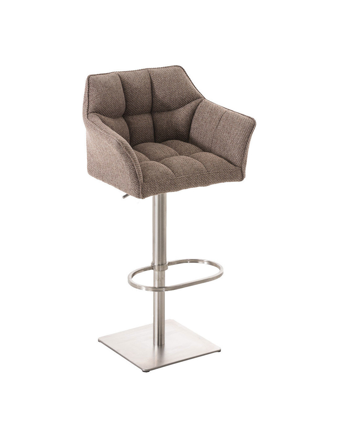 Tabouret de bar Hauteur réglable Marco en Polyester Chocolat chiné Acier inoxydable Argenté Brossé mat