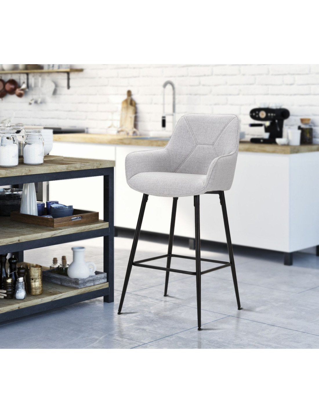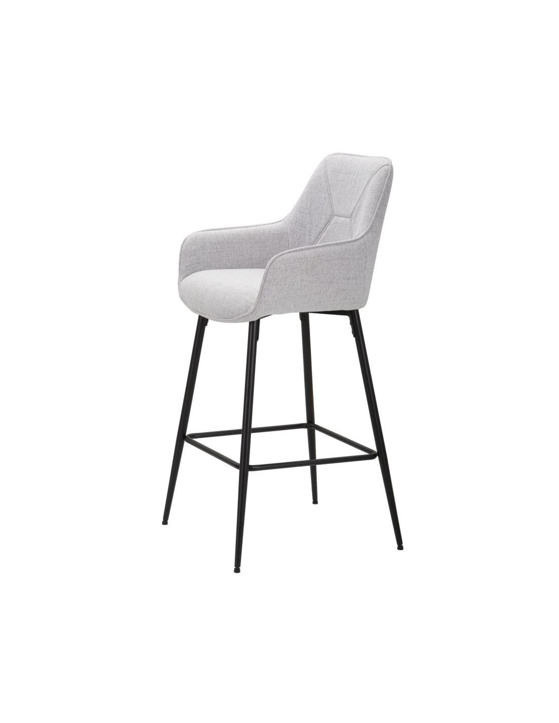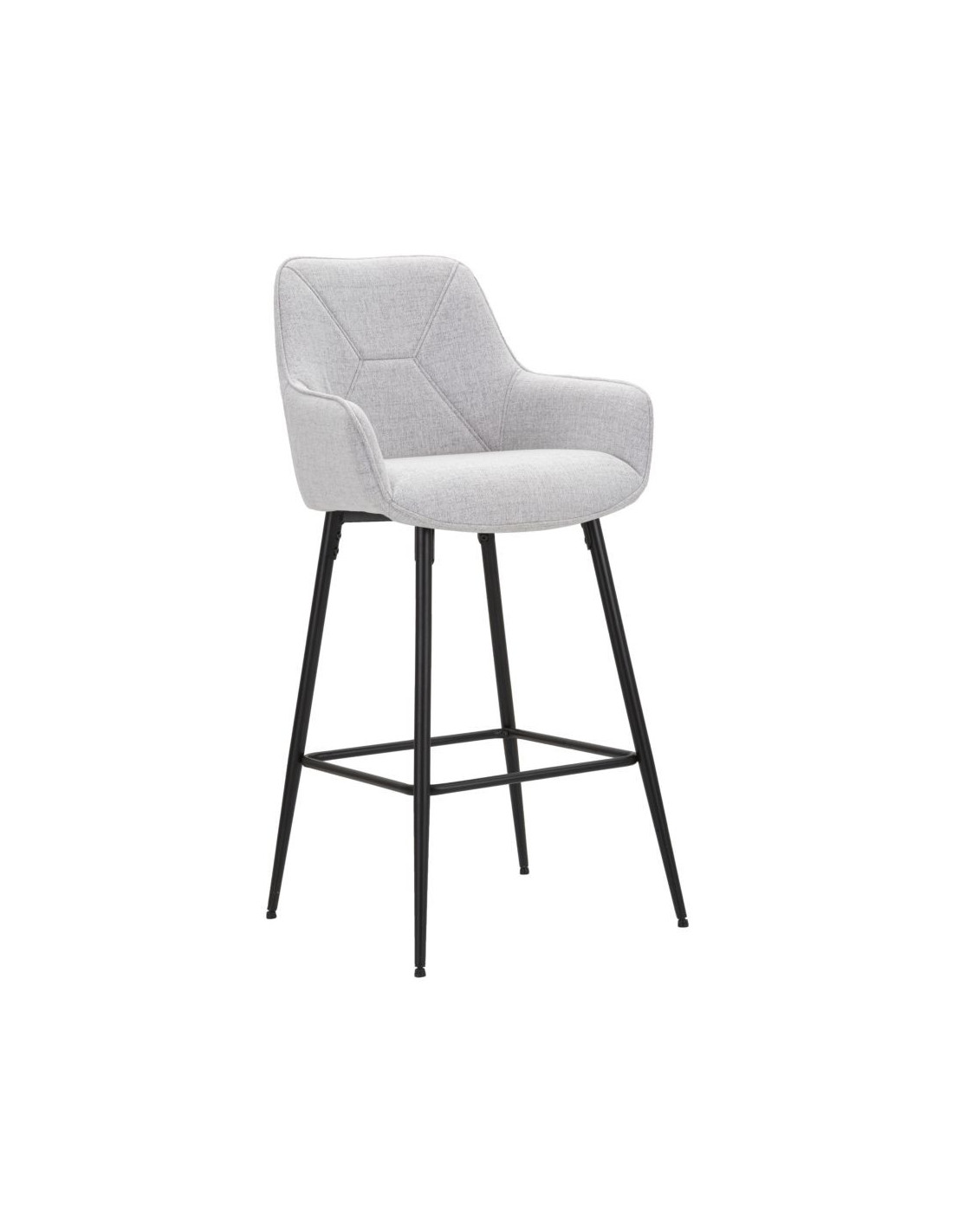 Tabouret de bar moderne avec dossier en Tissu Gris Métal Noir Vincenza (Lot de 2)