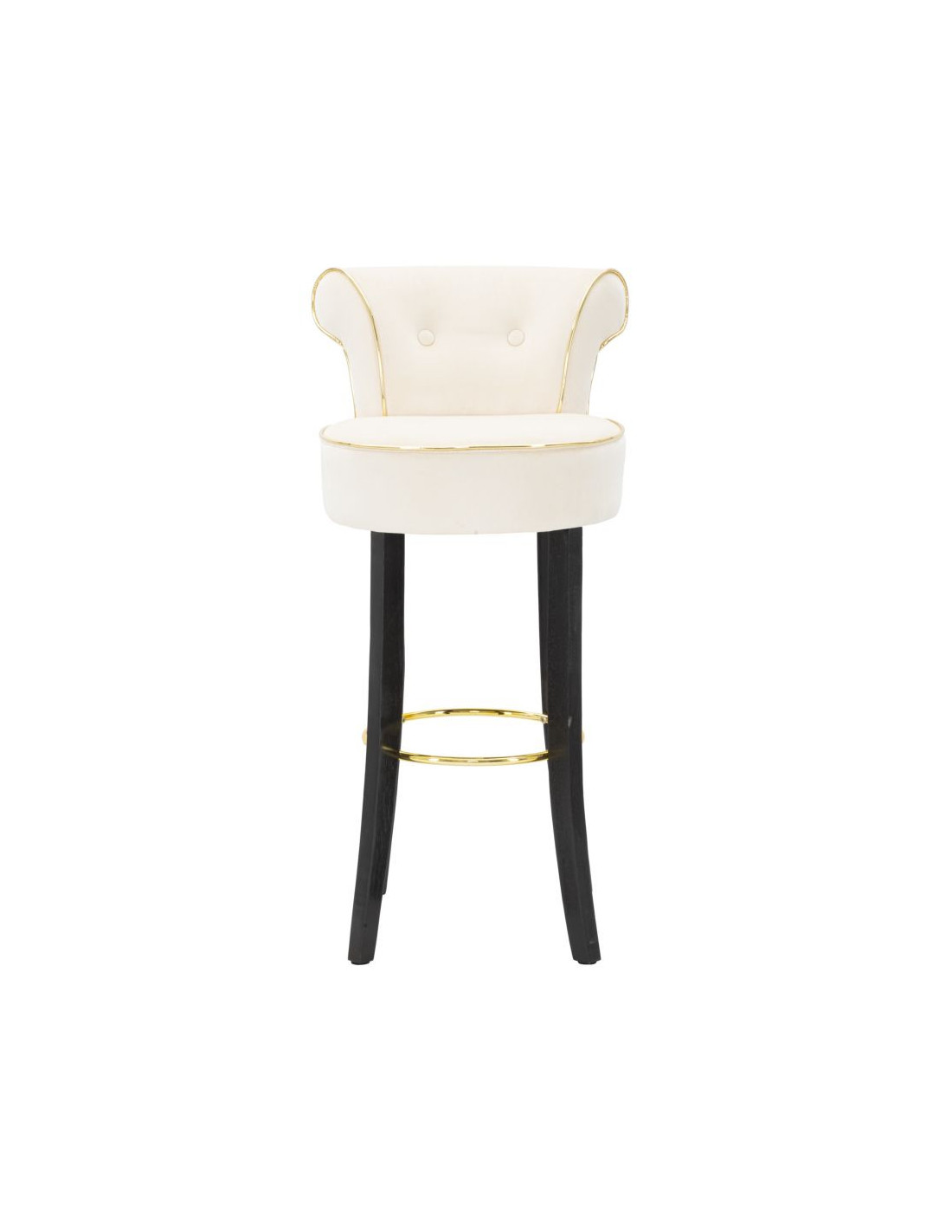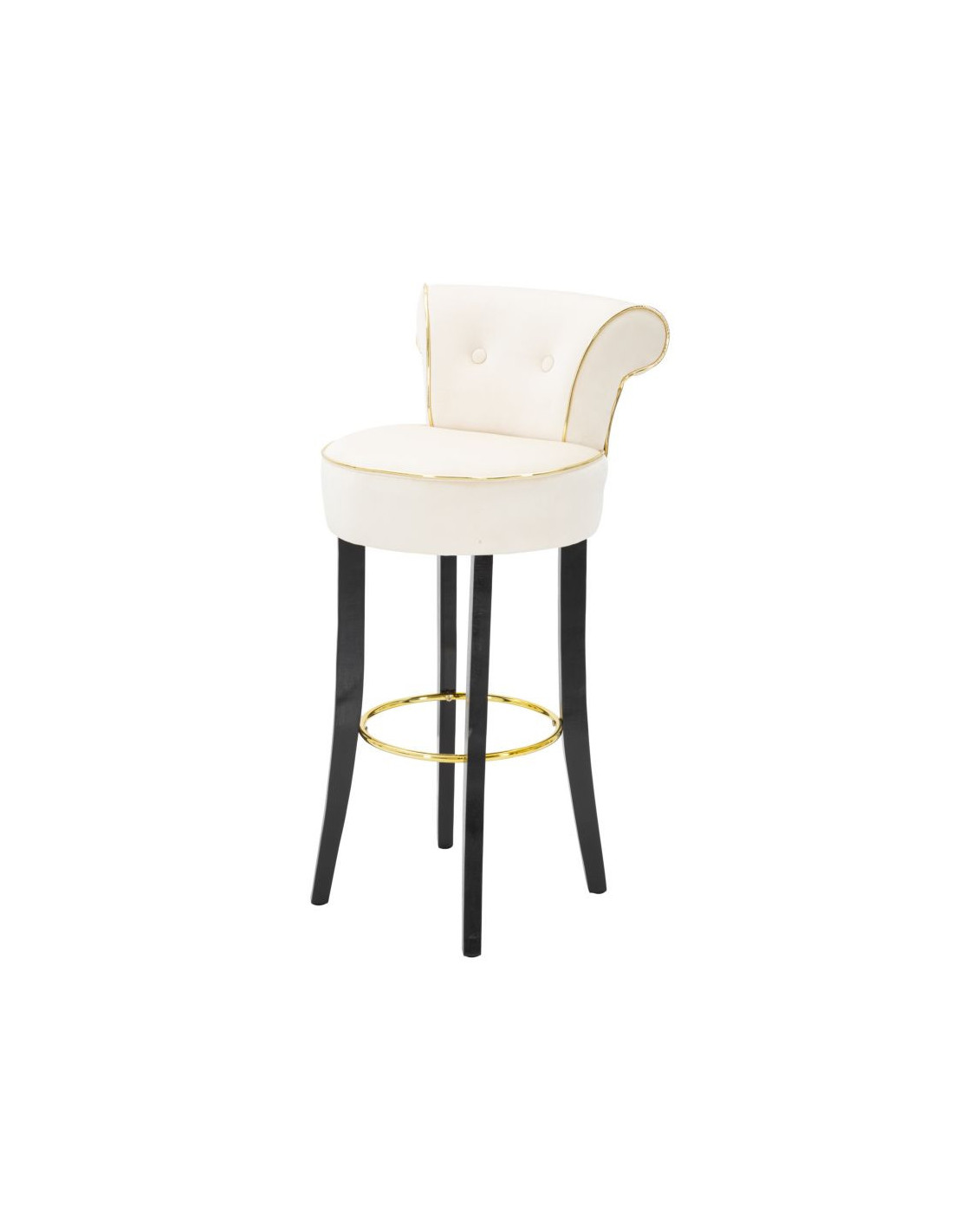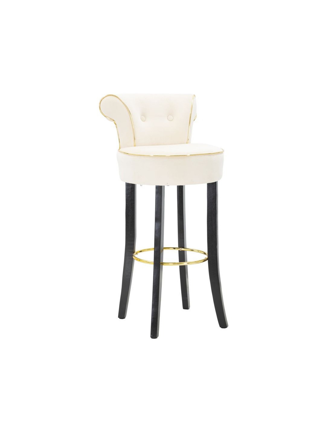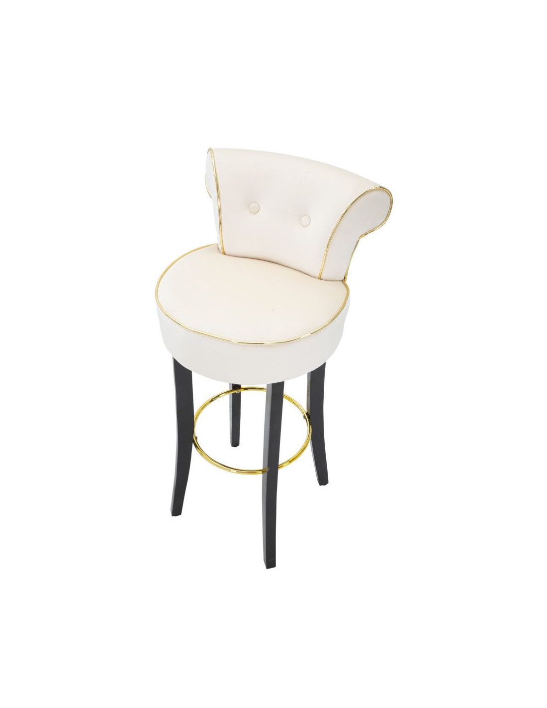 Tabouret de bar moderne avec dossier en Velours Blanc crème Capitonné Simili Métal Doré Luxy