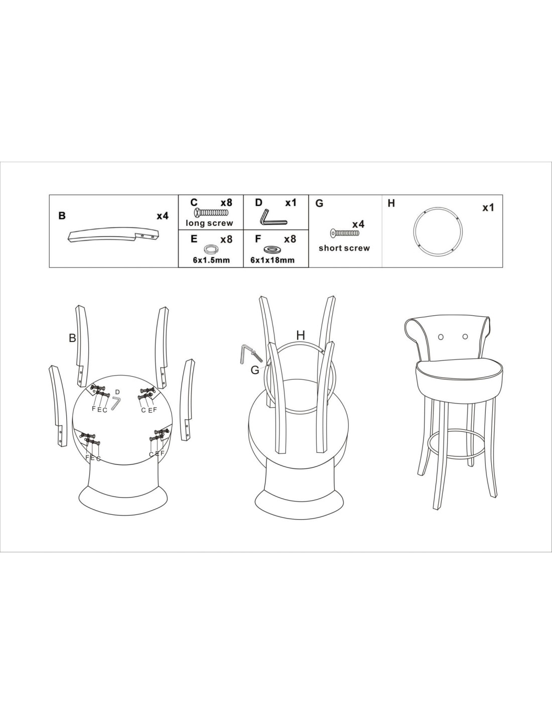 Tabouret de bar moderne avec dossier en Velours Gris Capitonné Simili Métal Doré Luxy