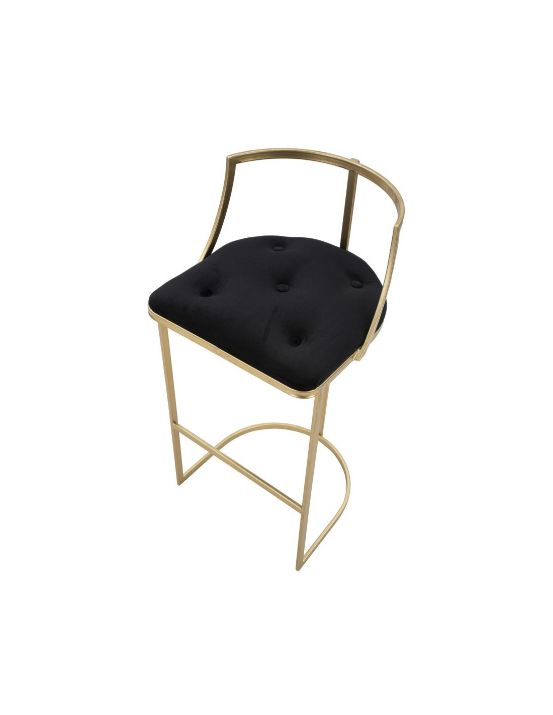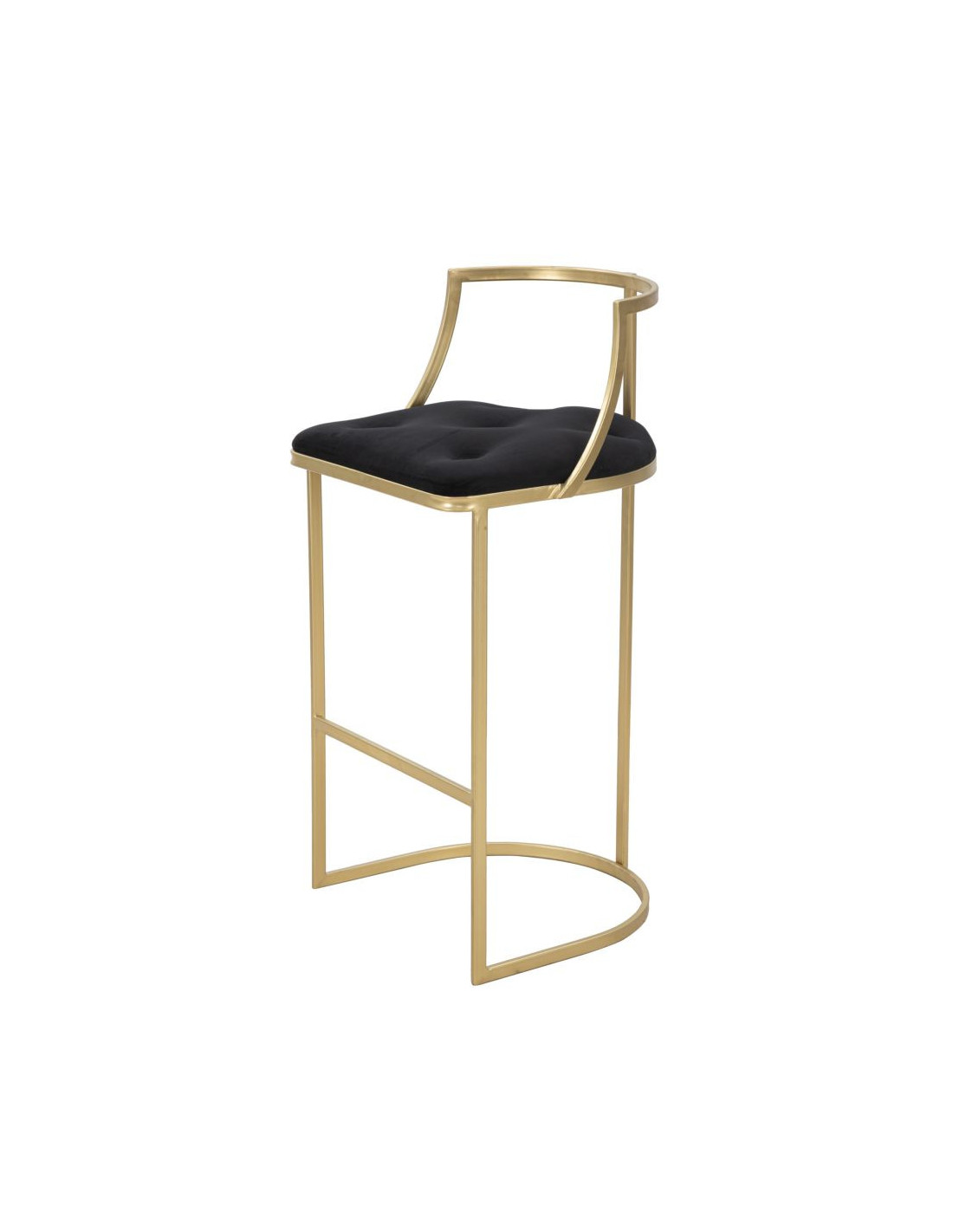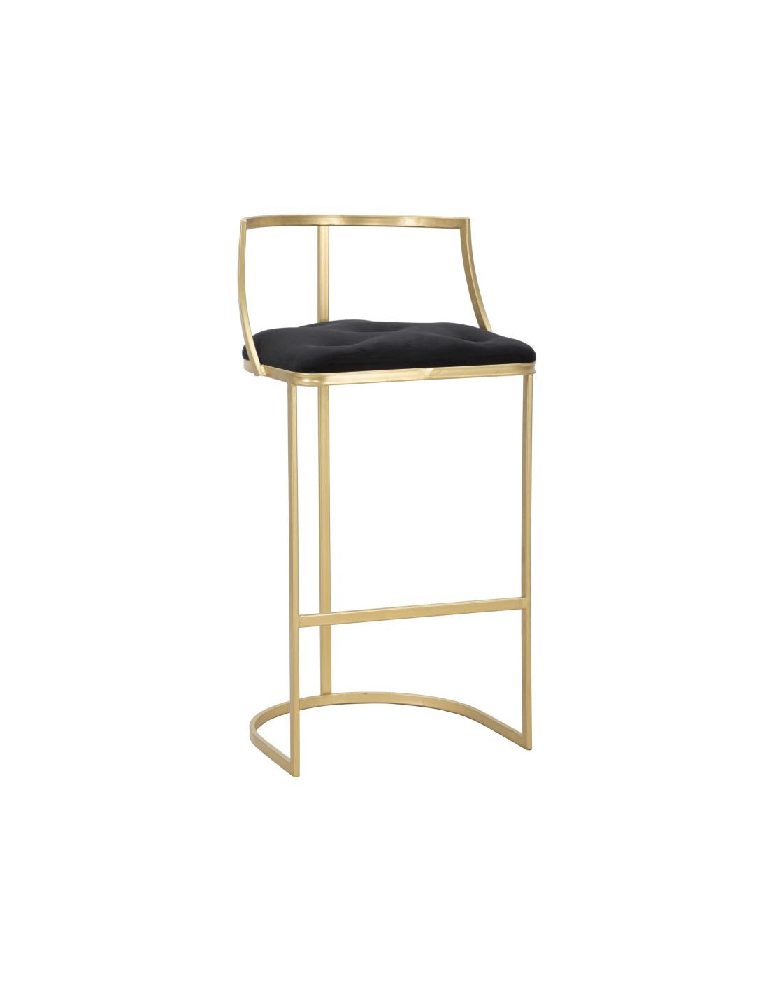 Tabouret de bar moderne avec dossier en Velours Noir Capitonné Métal Doré Istambul