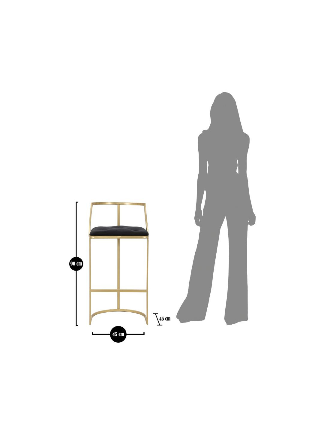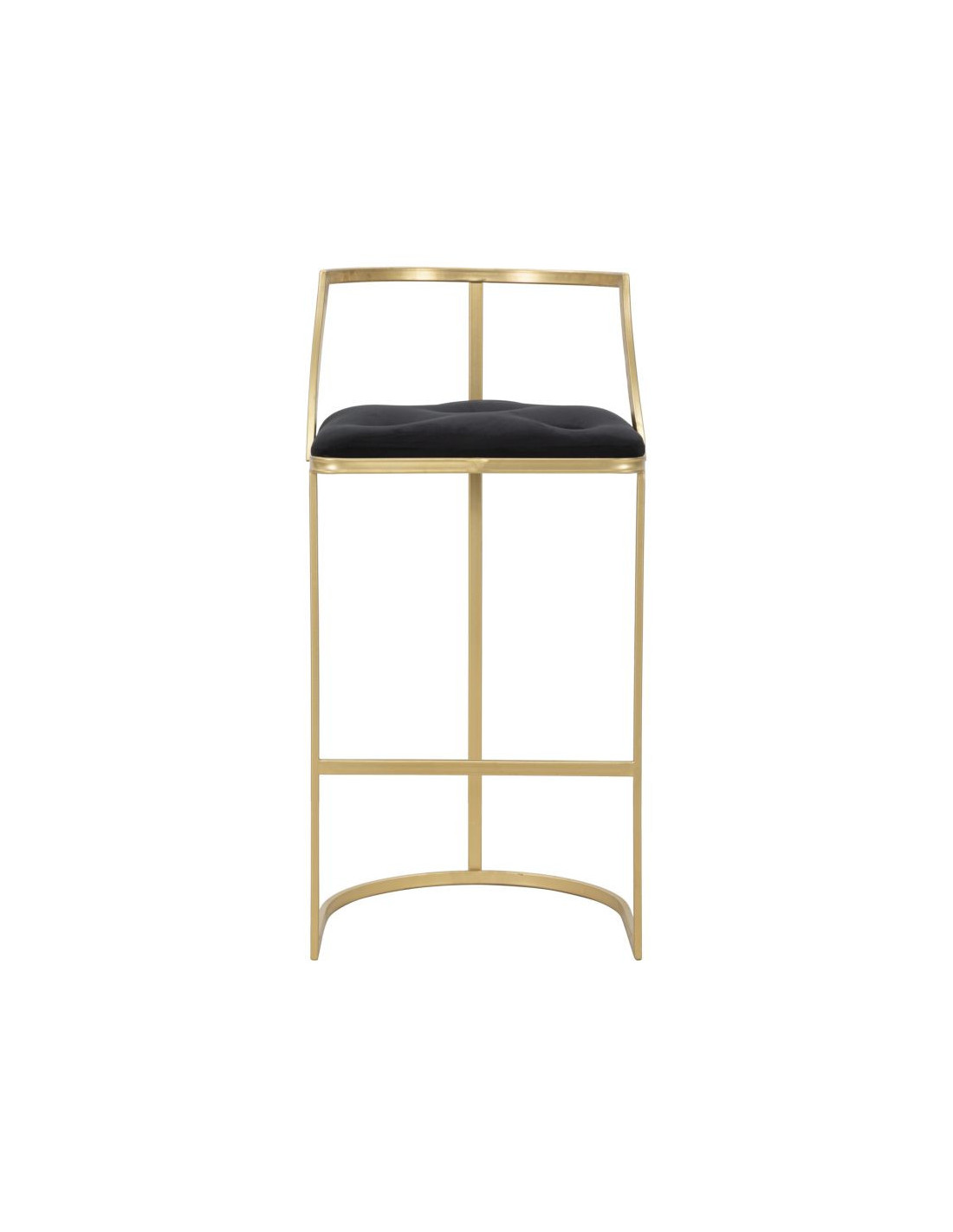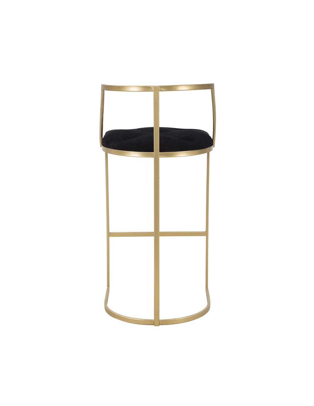 Tabouret de bar moderne avec dossier en Velours Noir Capitonné Métal Doré Istambul