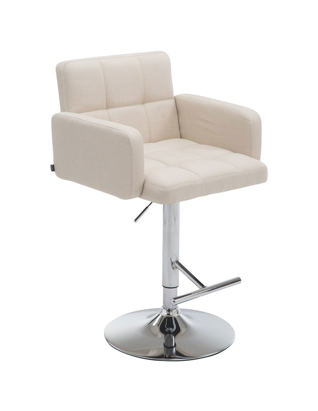 Tabouret de bar moderne chic en Tissu Blanc crème Métal Argenté Roman