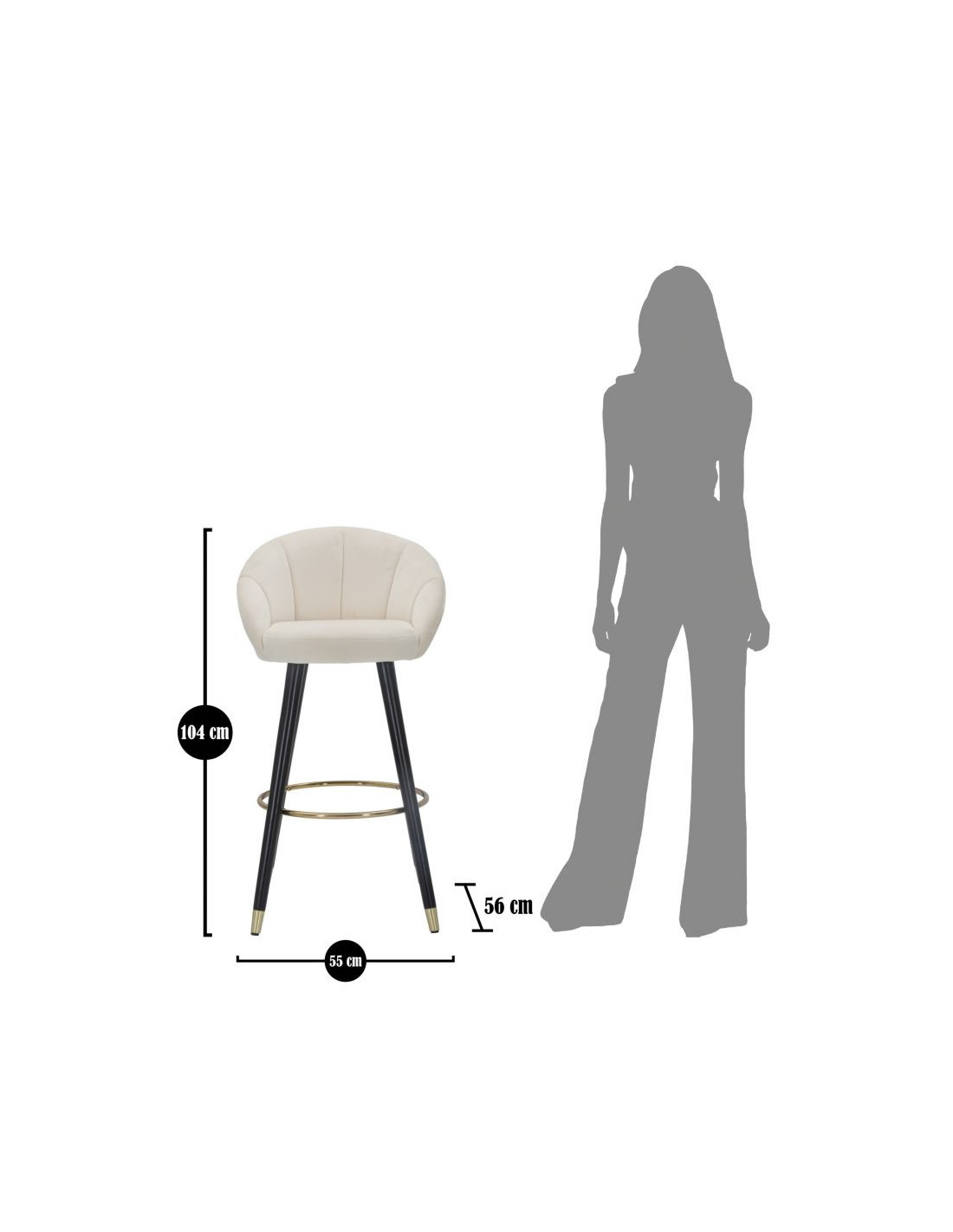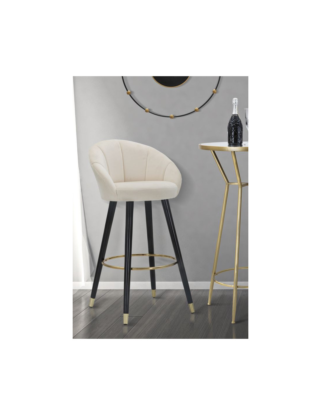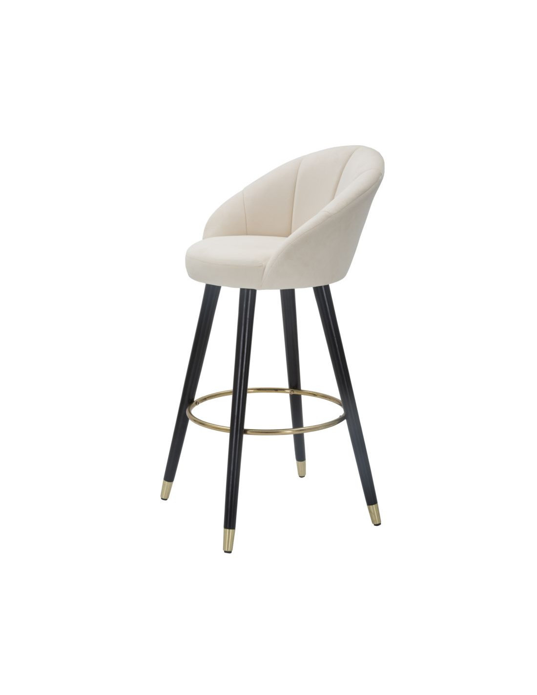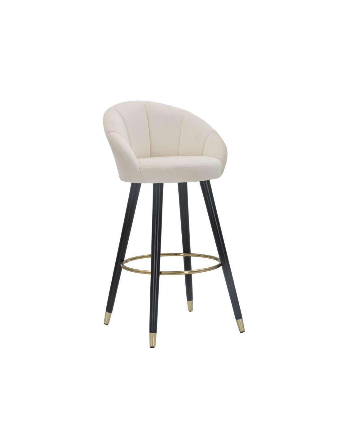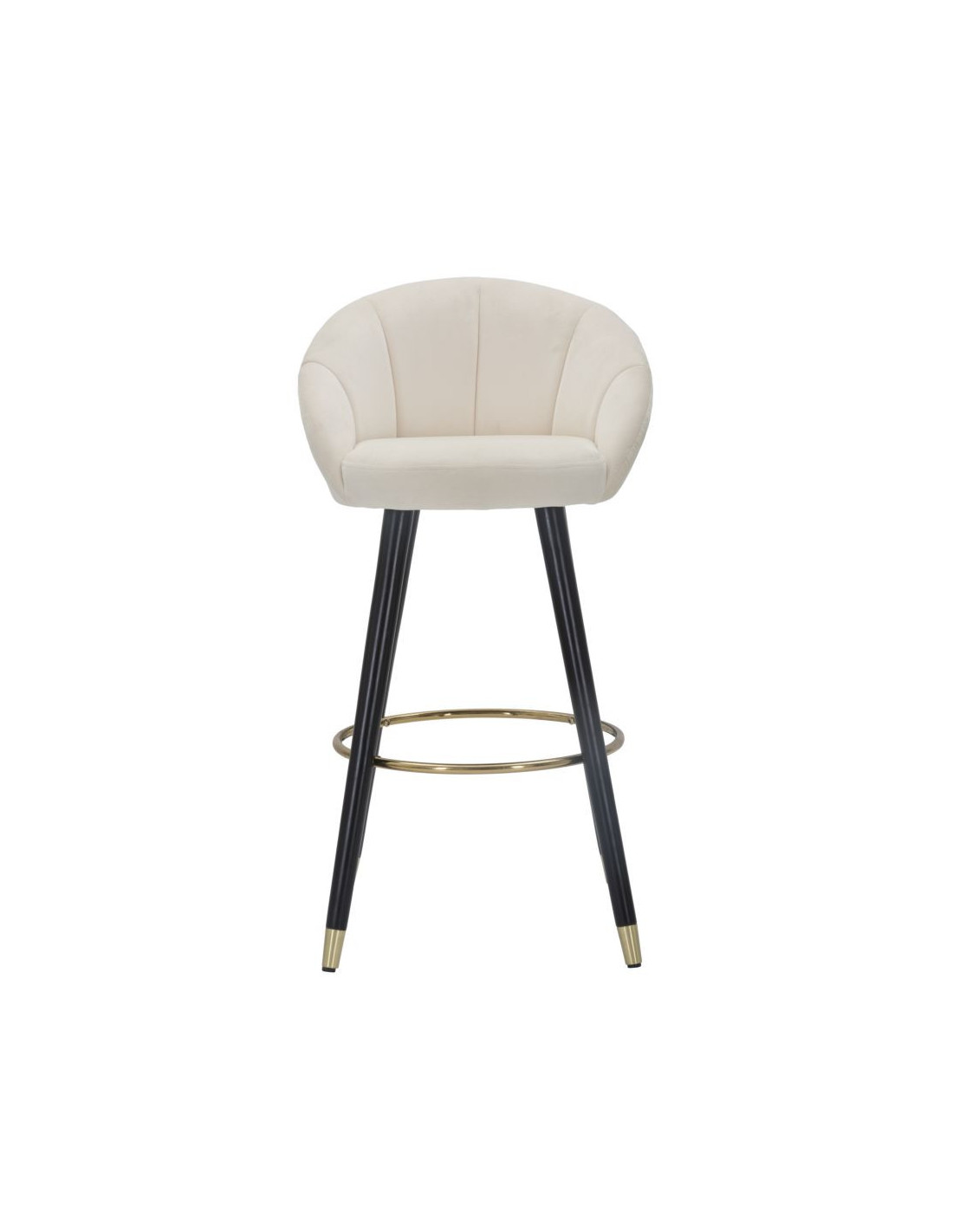 Tabouret de bar moderne chic en Velours Blanc crème Métal Noir Doré Prague
