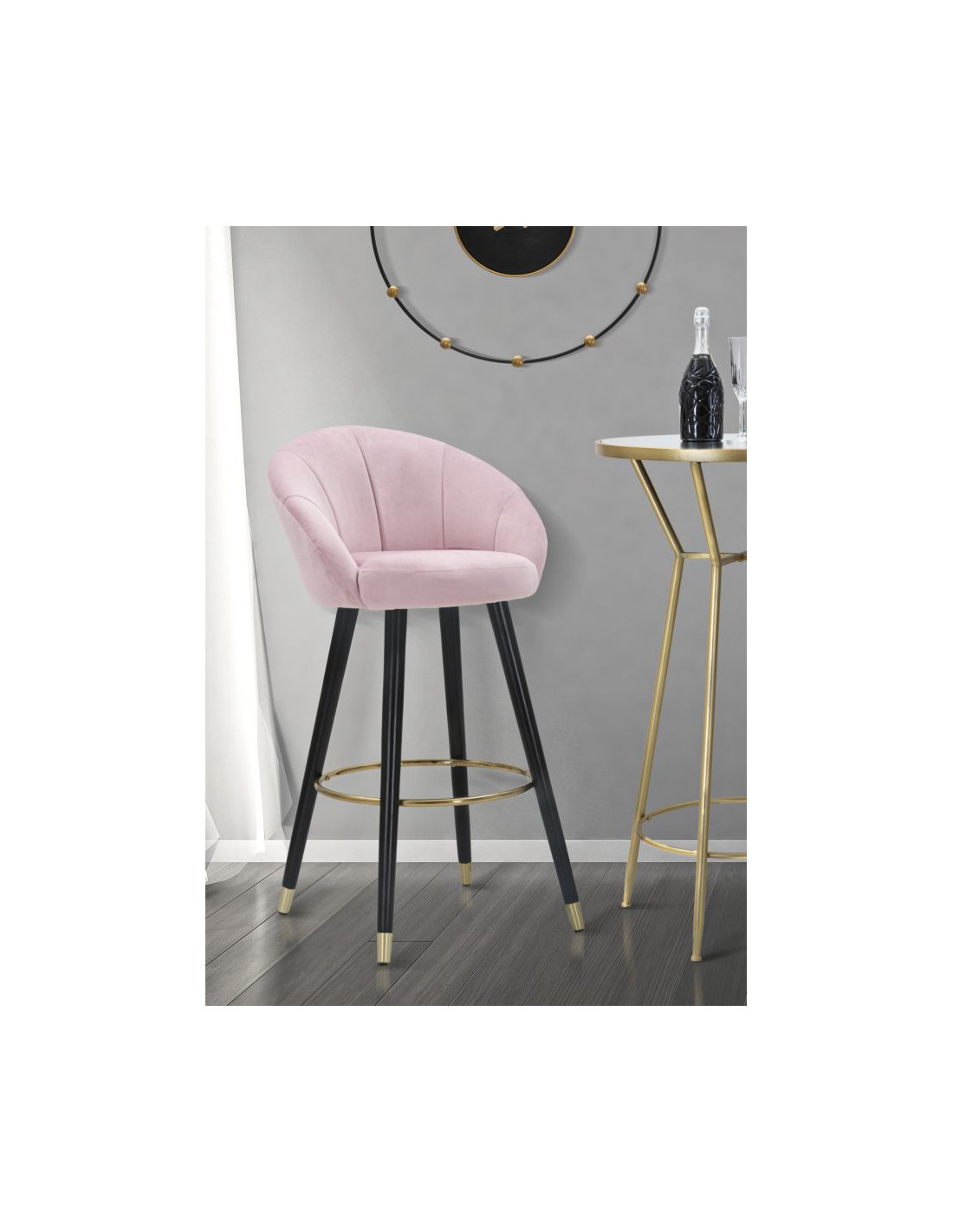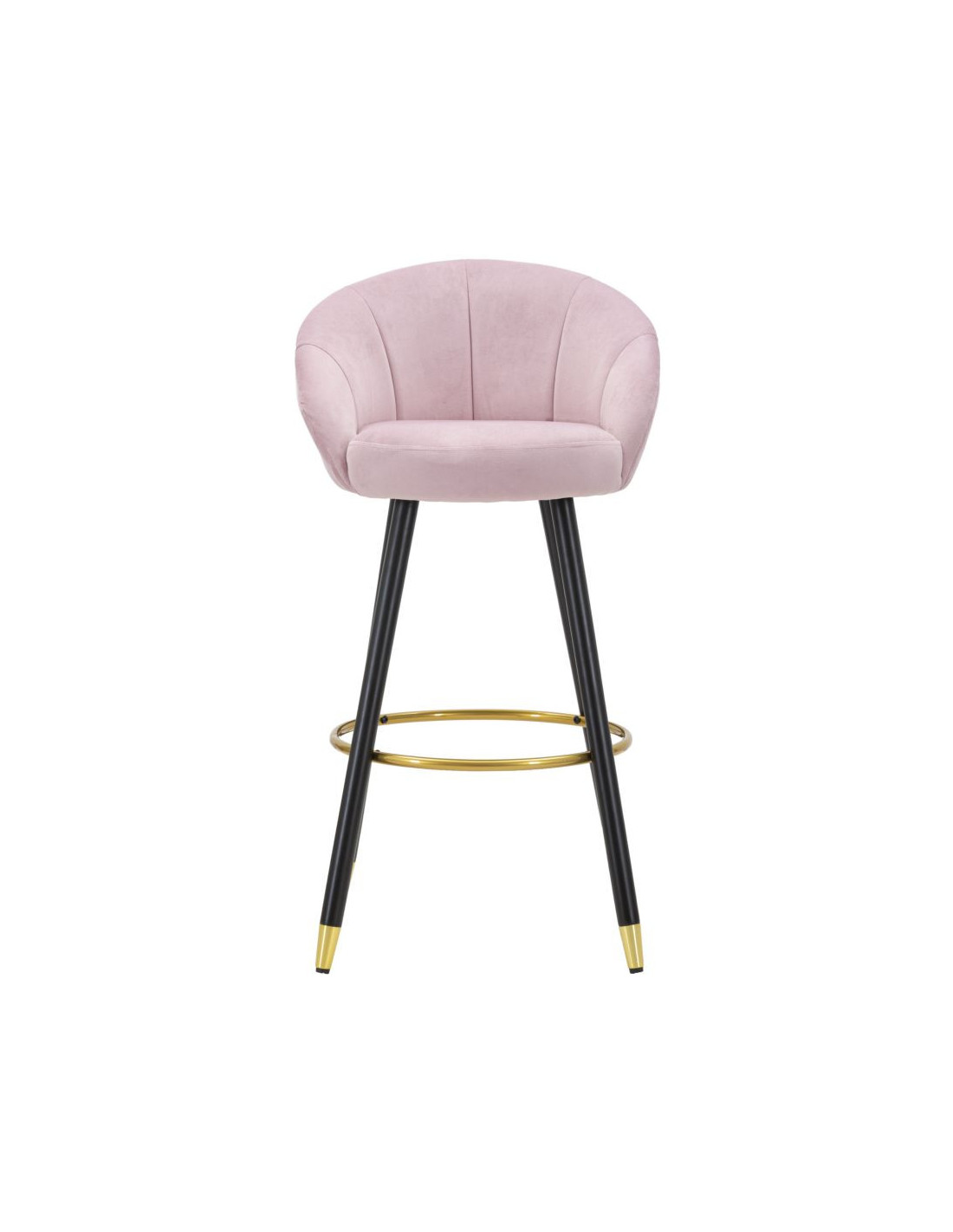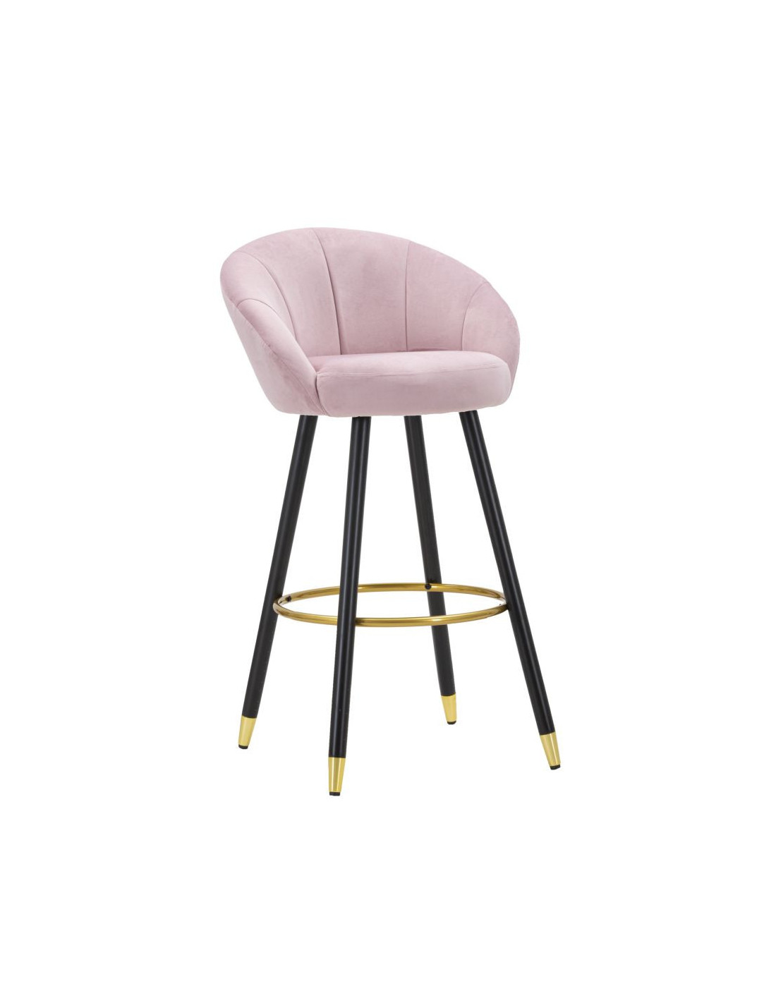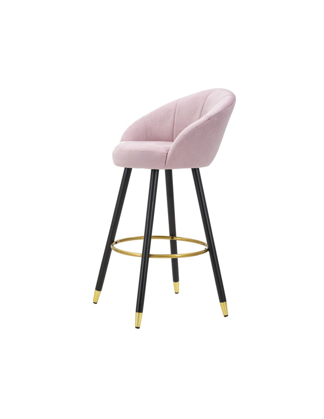 Tabouret de bar moderne chic en Velours Rose Métal Noir Doré Prague