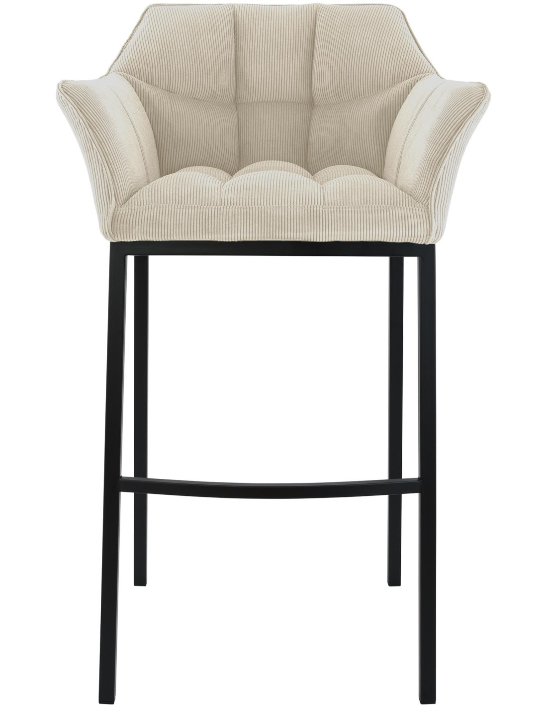 Tabouret de bar moderne chic Velours côtelé Blanc crème Acier inoxydable Noir Oveya - 1