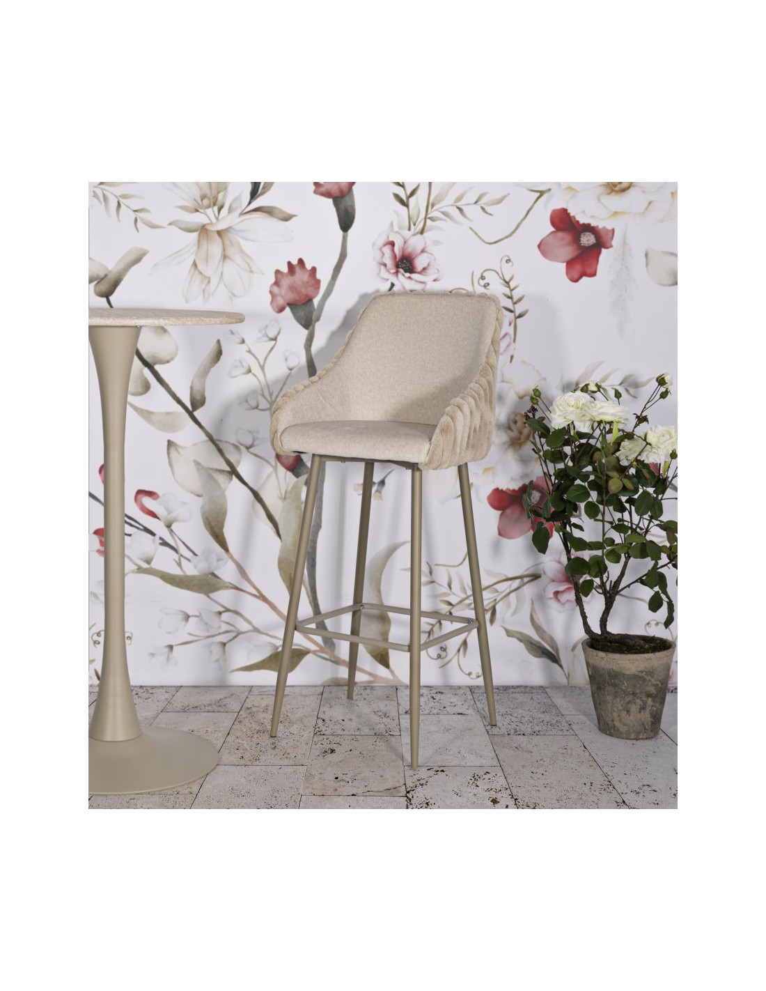 Tabouret de bar moderne chic Velours Côtelé Métal Blanc crème Alaska (Lot de 2)
