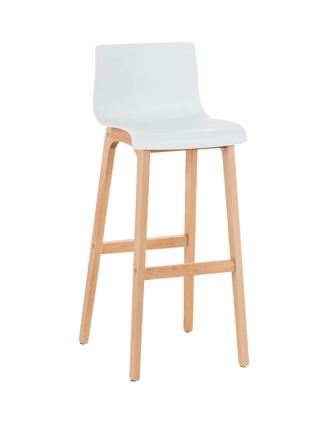 Tabouret de bar scandinave en Polypropylène Blanc Bois de hêtre Naturel Helyra