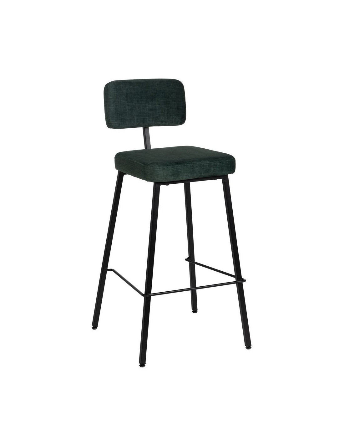 Tabouret de bar moderne en Tissu Vert Métal Noir Flavio (Lot de 4) - 1