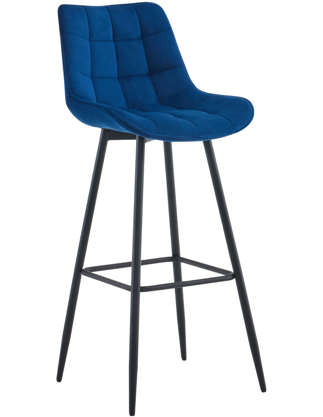 Tabouret de bar moderne en Velours Bleu Métal Noir Motif matelassé Nolwin