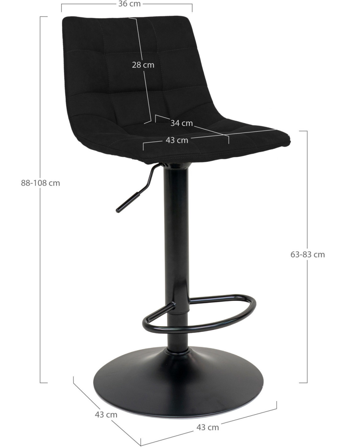 Tabouret de bar moderne réglable Velours Noir Métal Noir Middelfart (Lot de 2)