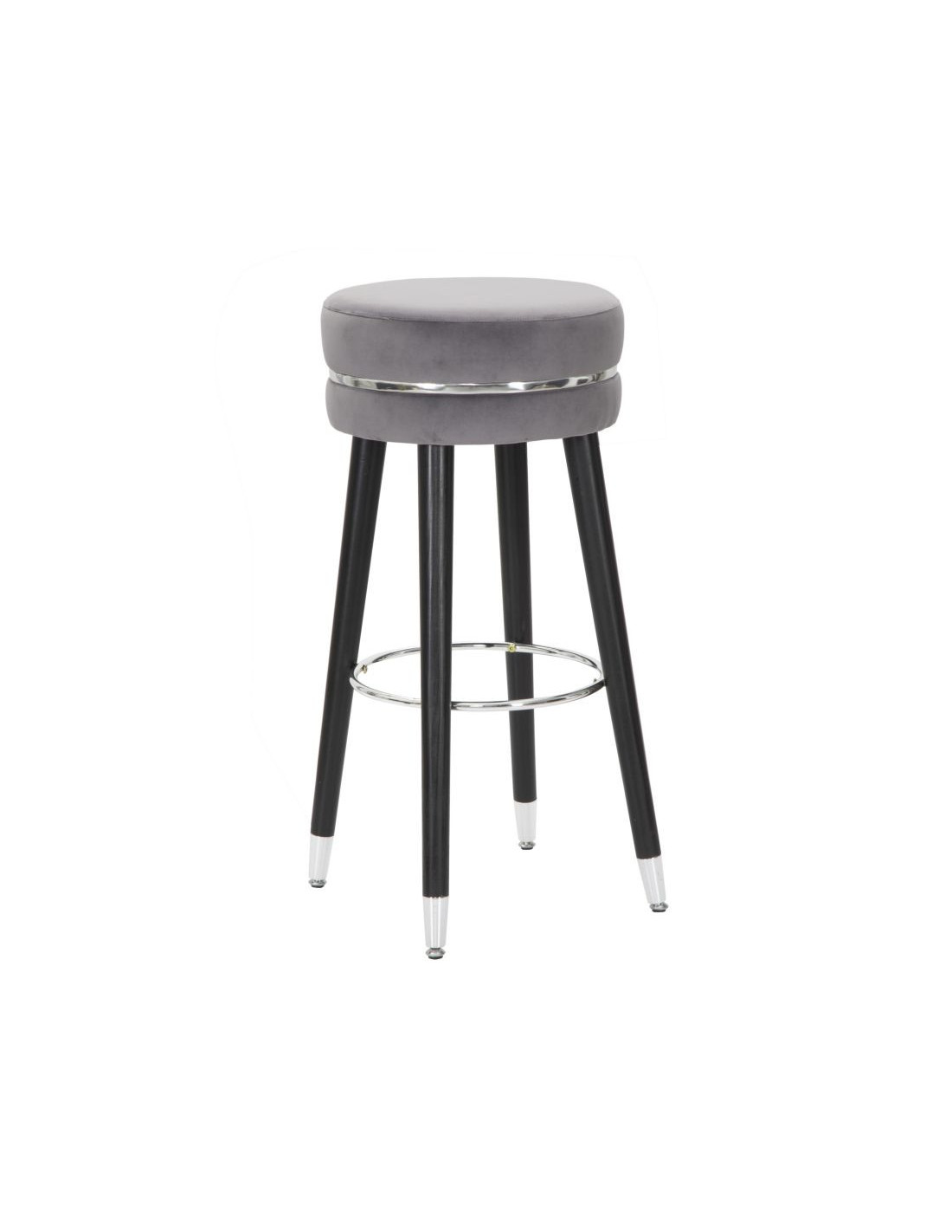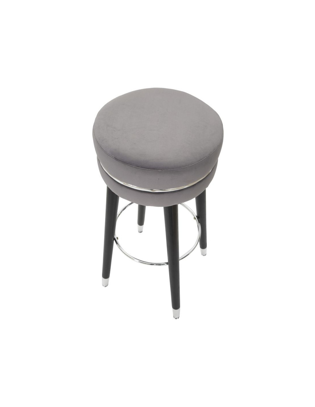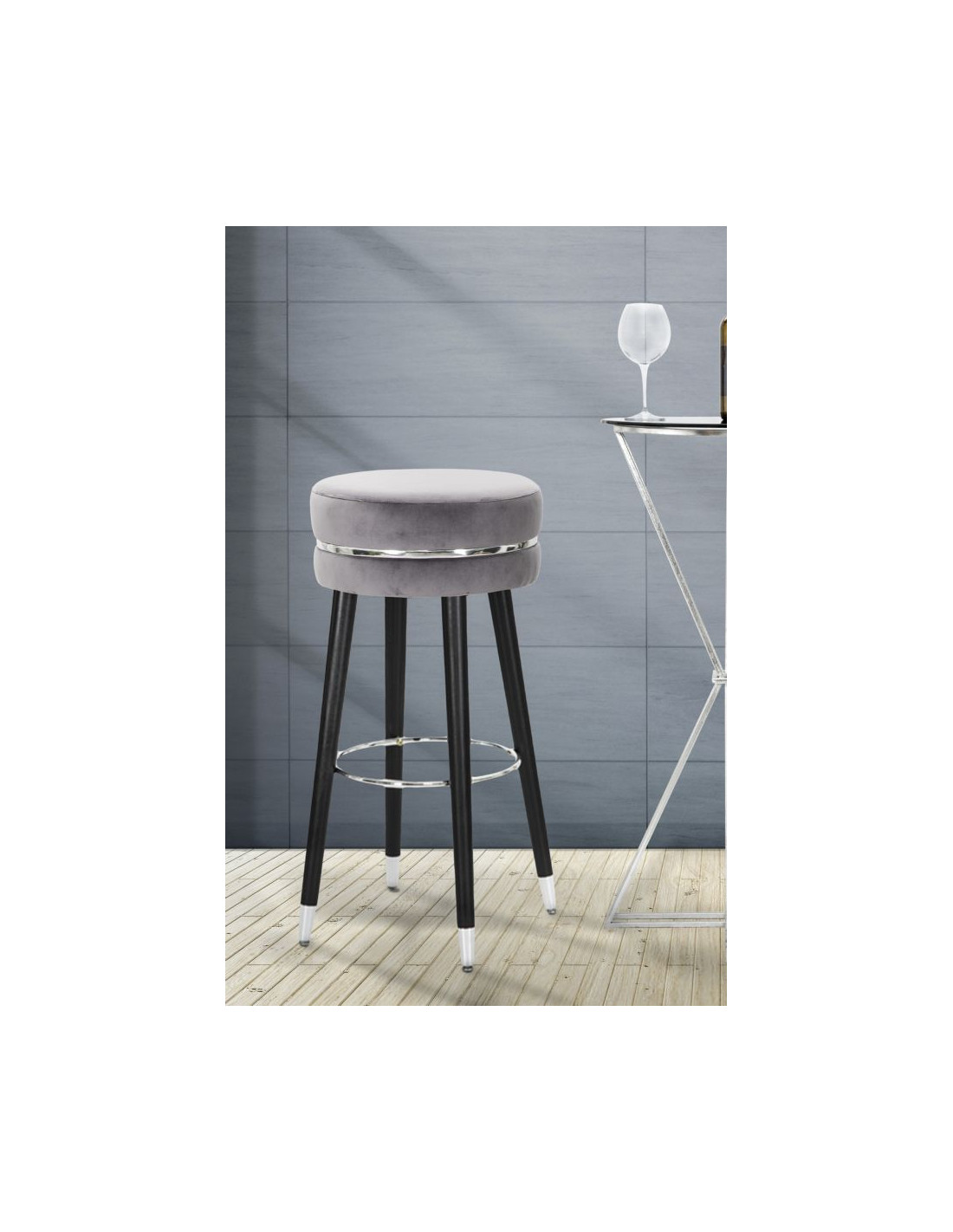 Tabouret de bar moderne rond en Velours Gris Métal Argenté Noir Paris