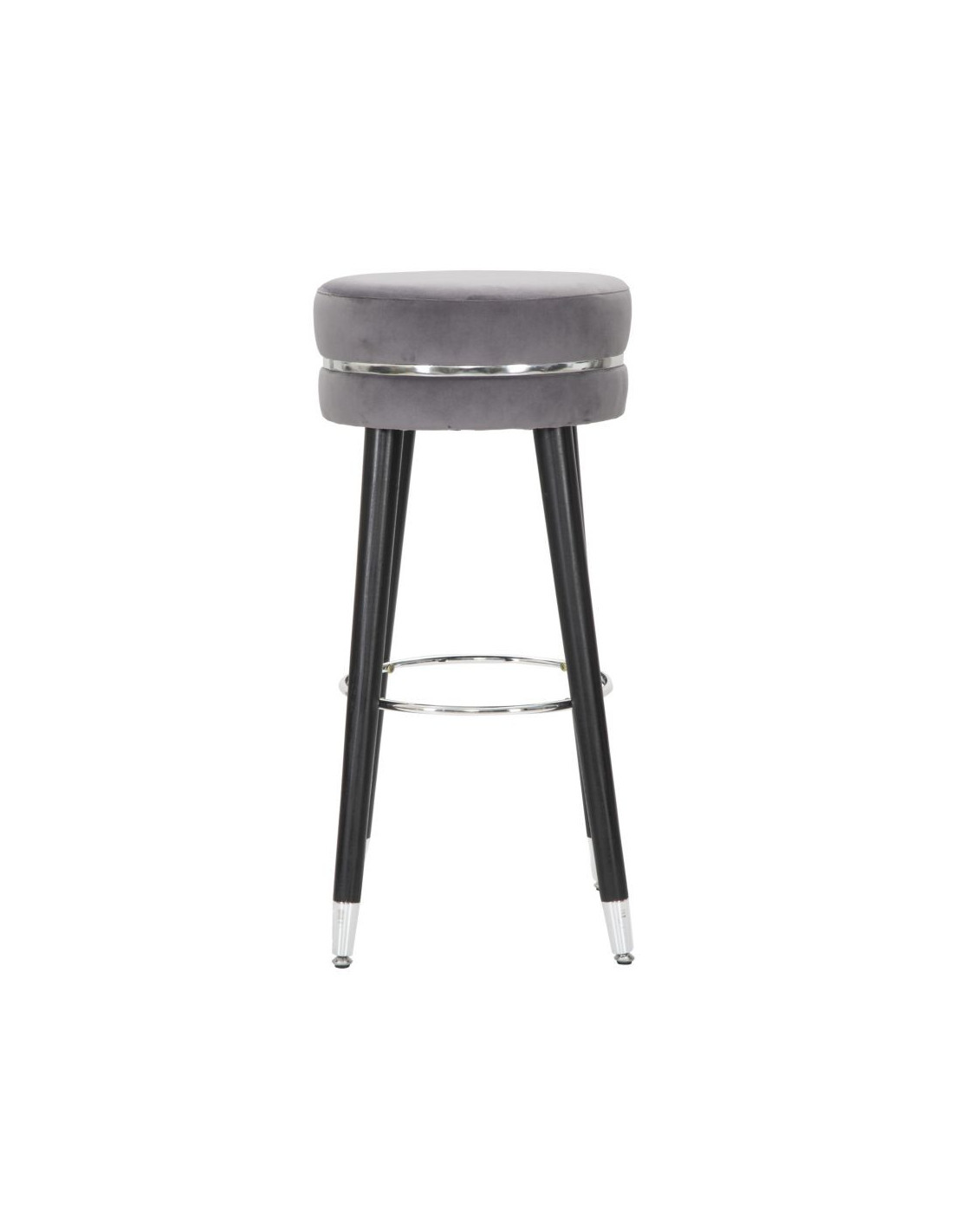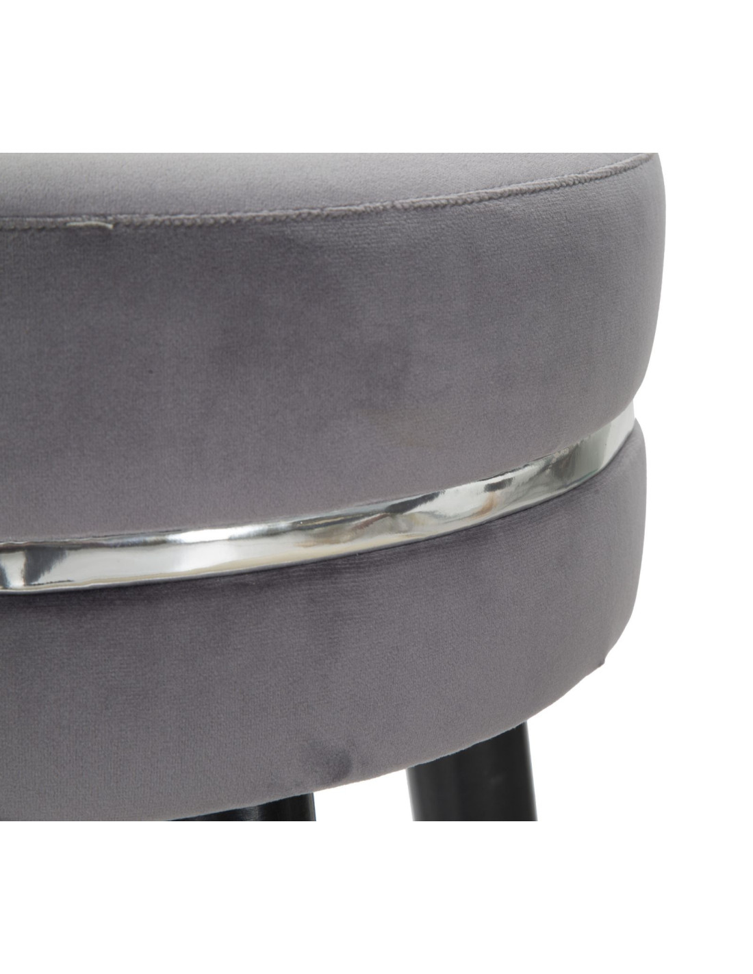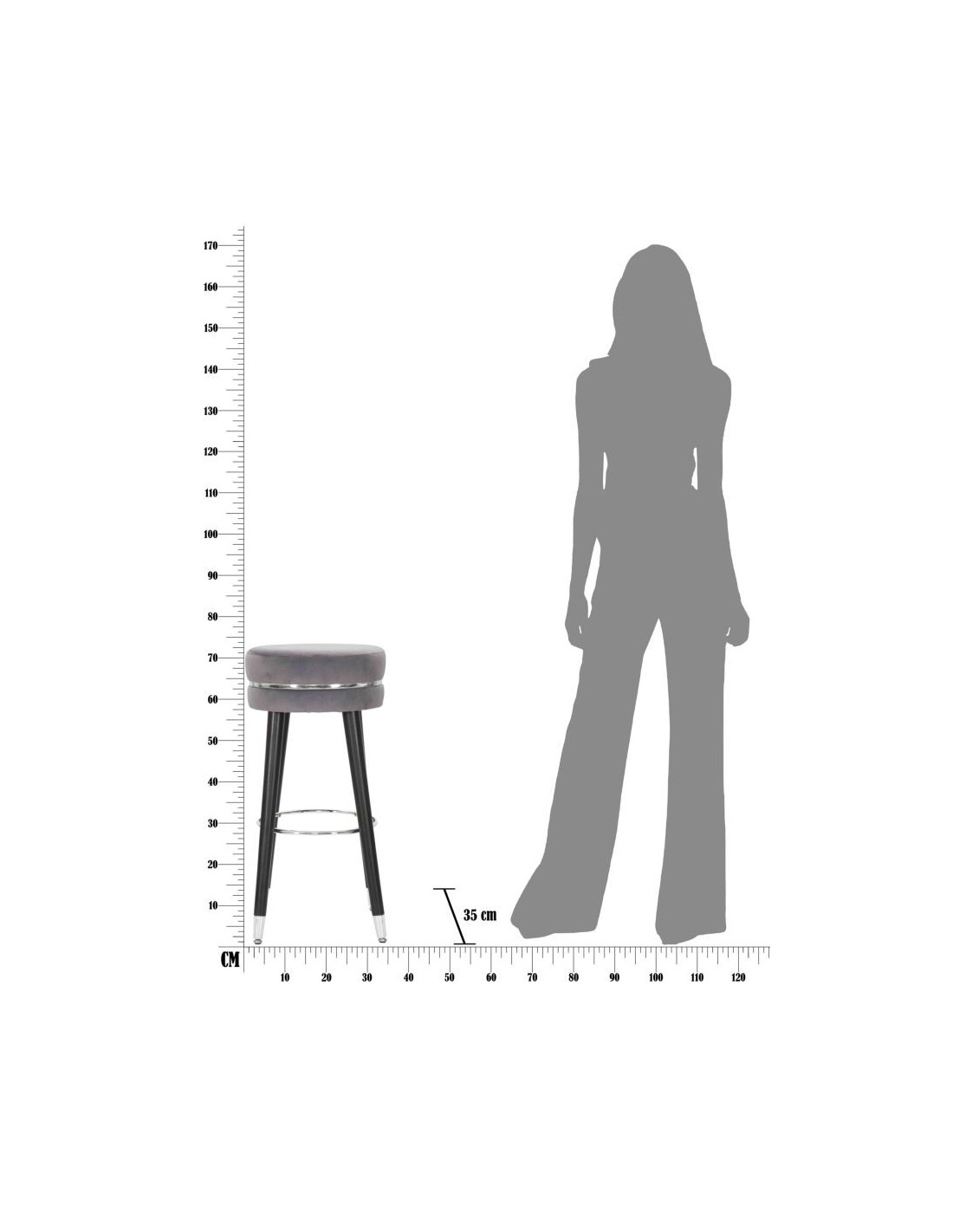 Tabouret de bar moderne rond en Velours Gris Métal Argenté Noir Paris - 9