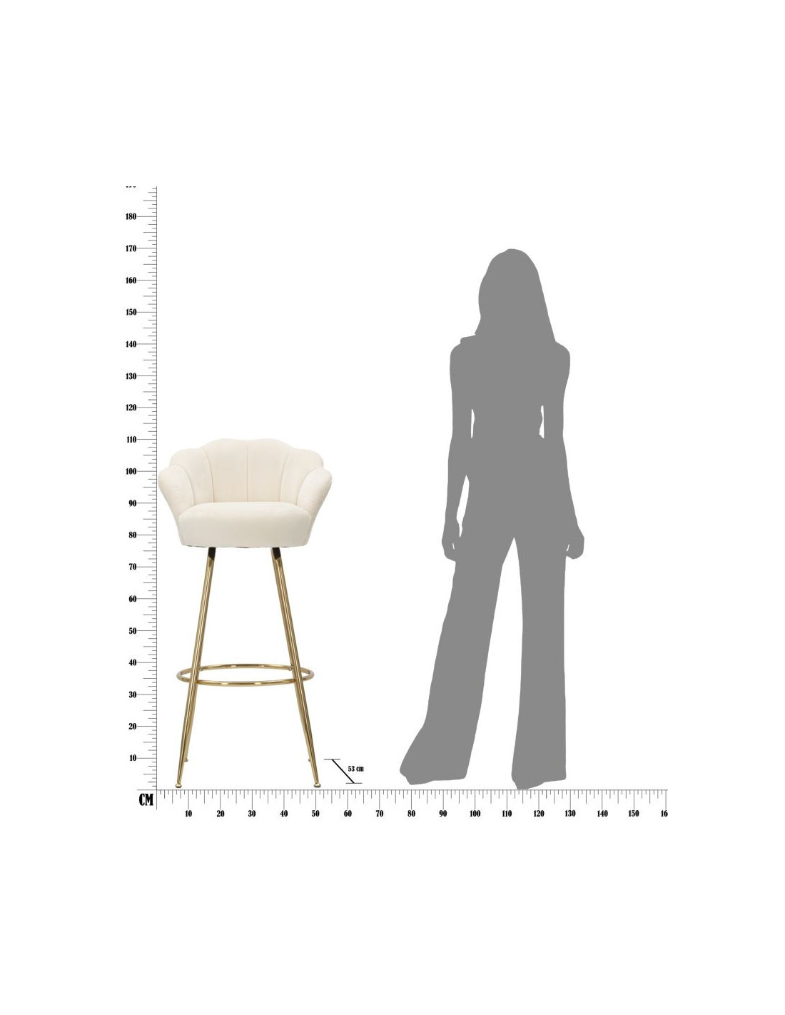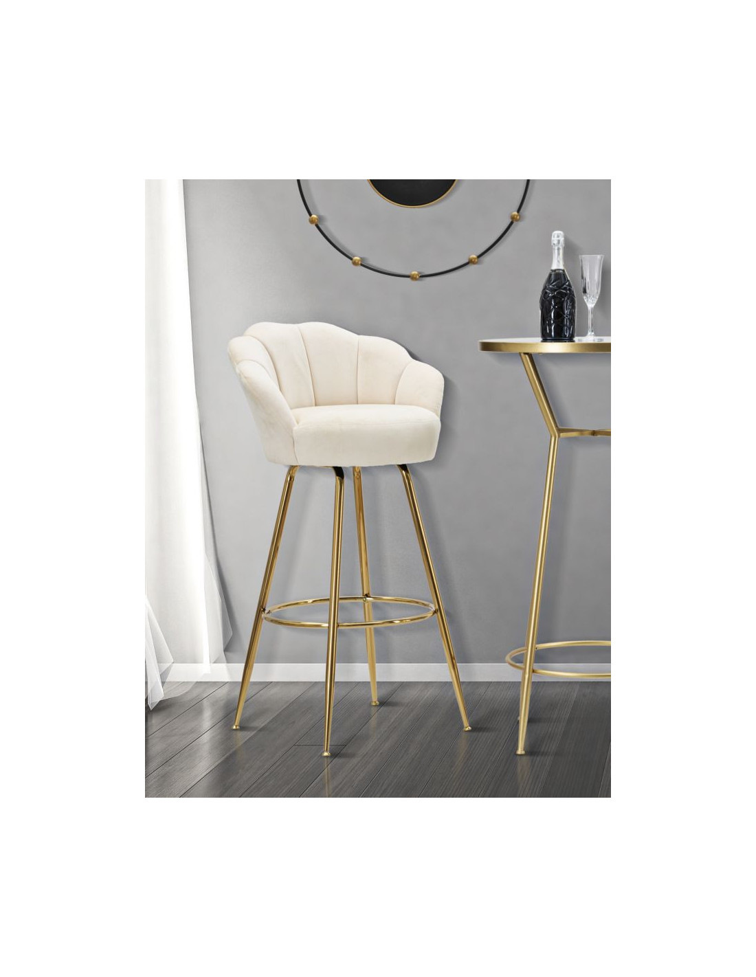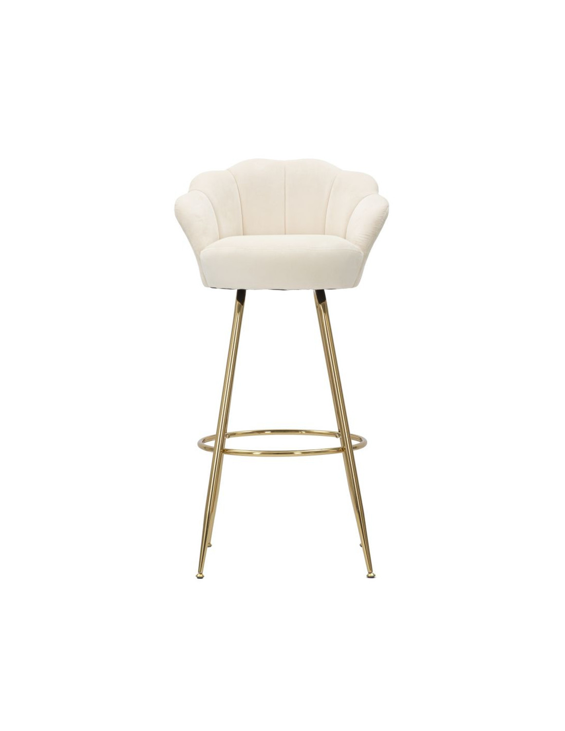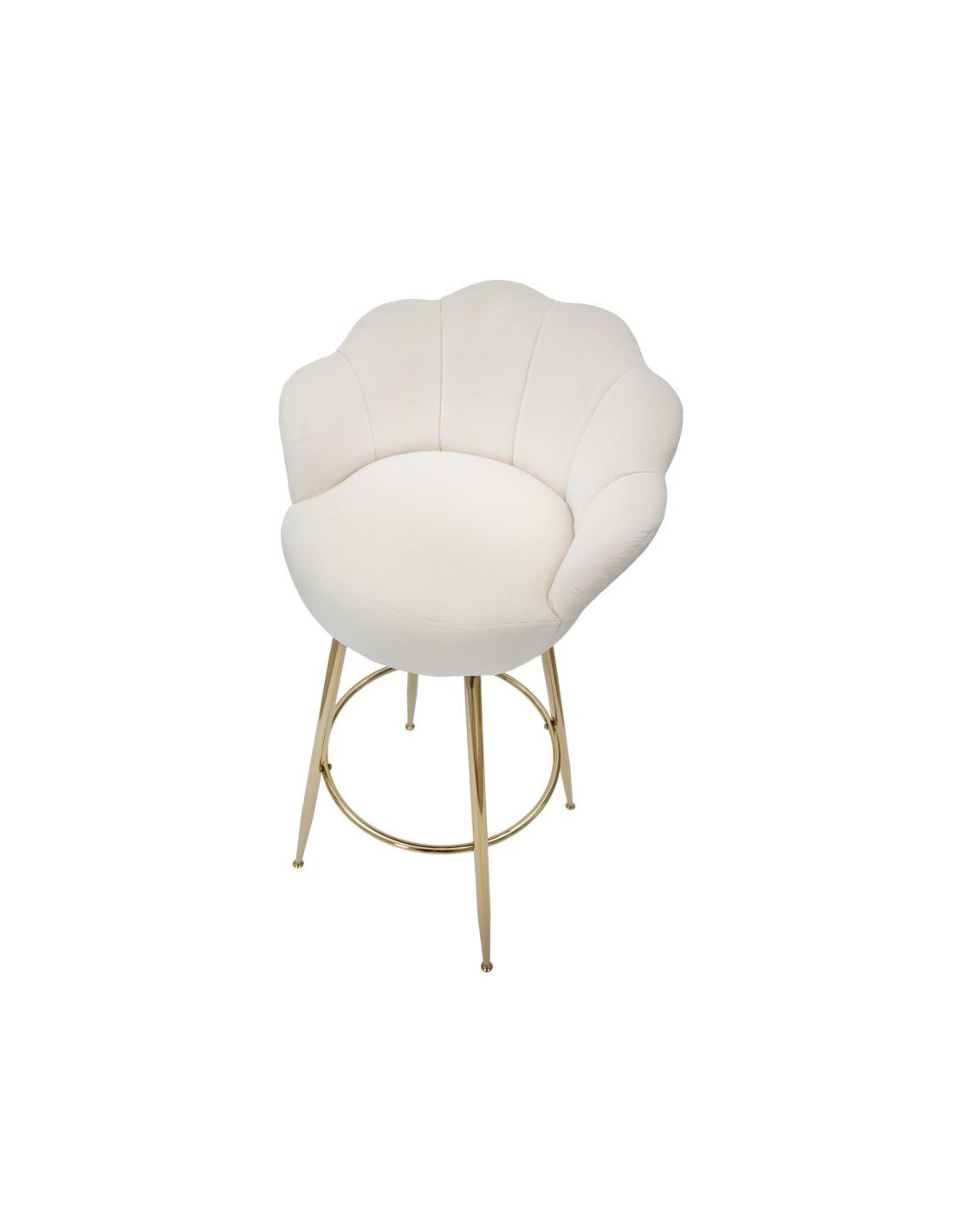 Tabouret de bar original Coquillage en Velours Blanc crème Métal Doré Vienna