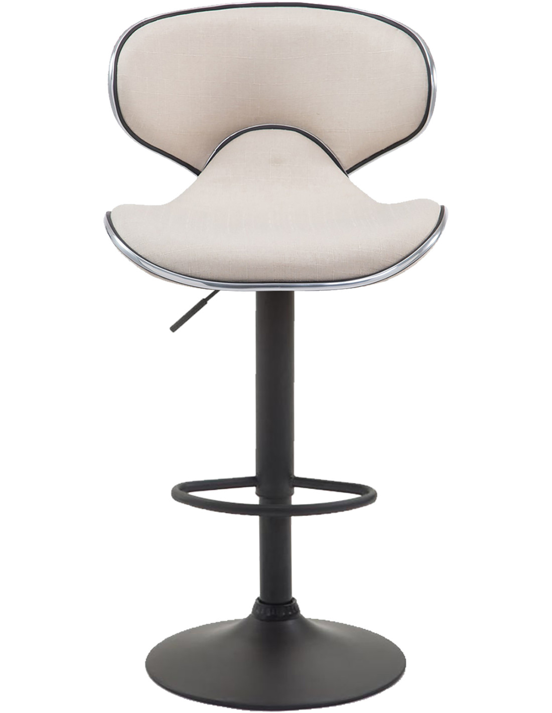 Tabouret de bar original en Tissu Blanc crème Métal Noir Liseret argenté Kryven