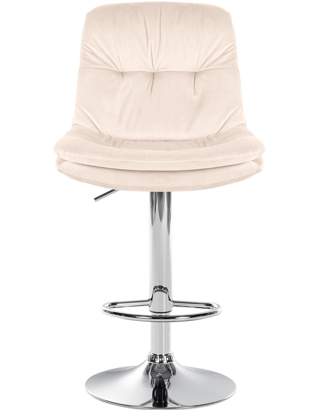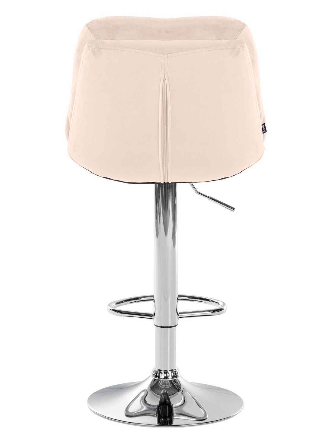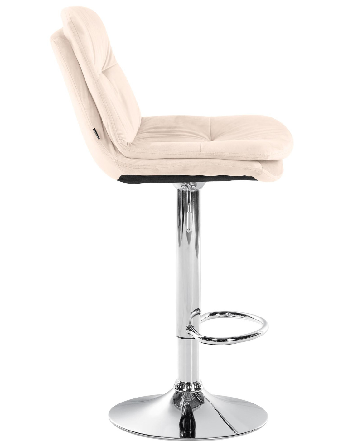 Tabouret de bar réglable moderne chic en Velours Blanc crème Métal Argenté Banja - 1