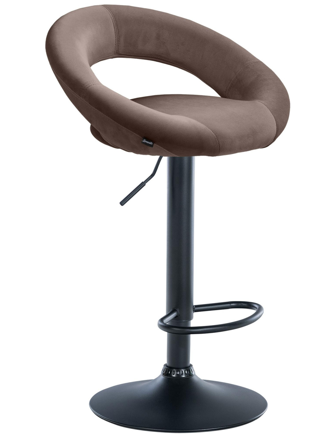 Tabouret de bar réglable moderne rond en Velours Marron Métal Noir Minden - 1