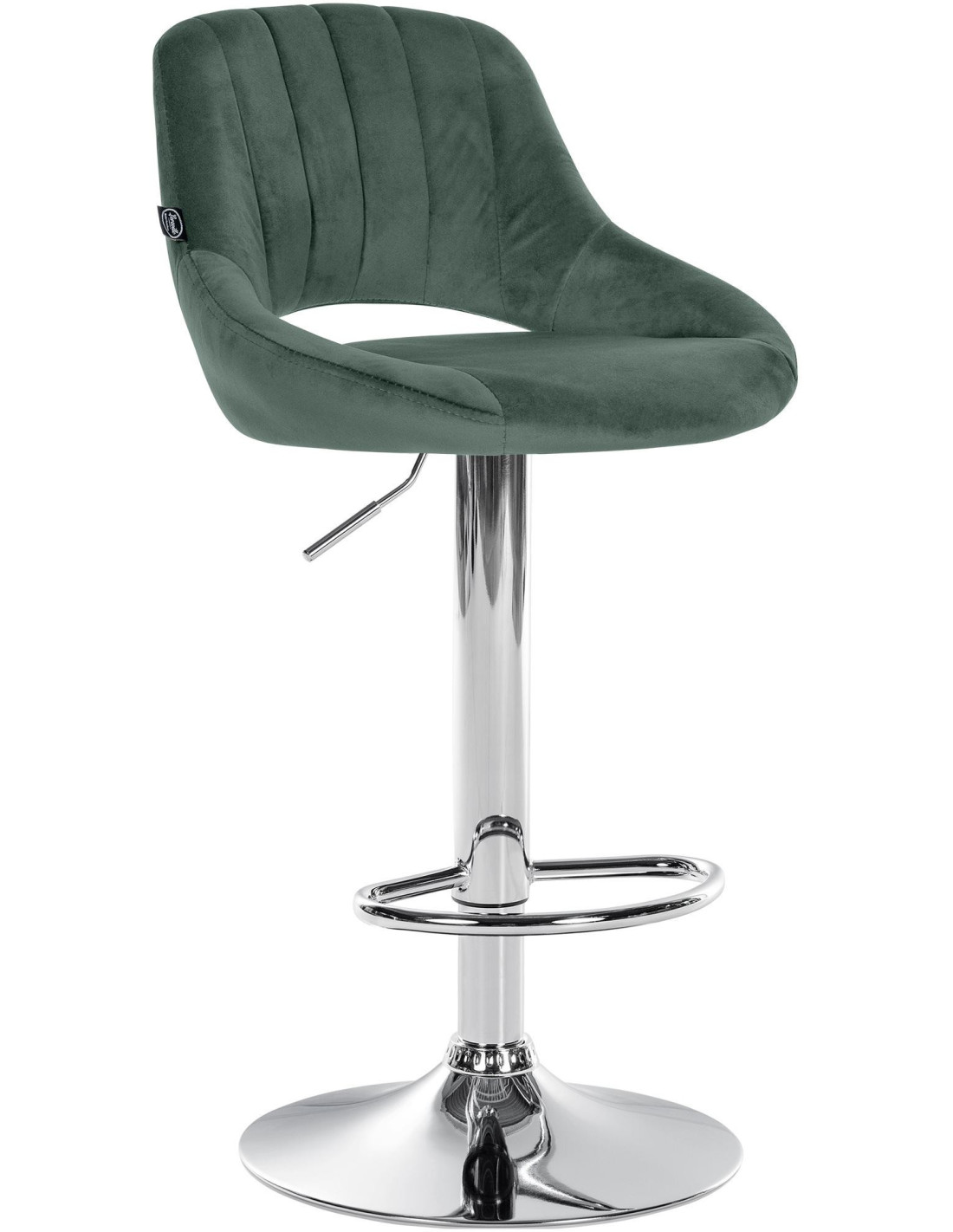 Tabouret de bar réglable pivotant en Velours Vert Métal Argenté Kelran - 1