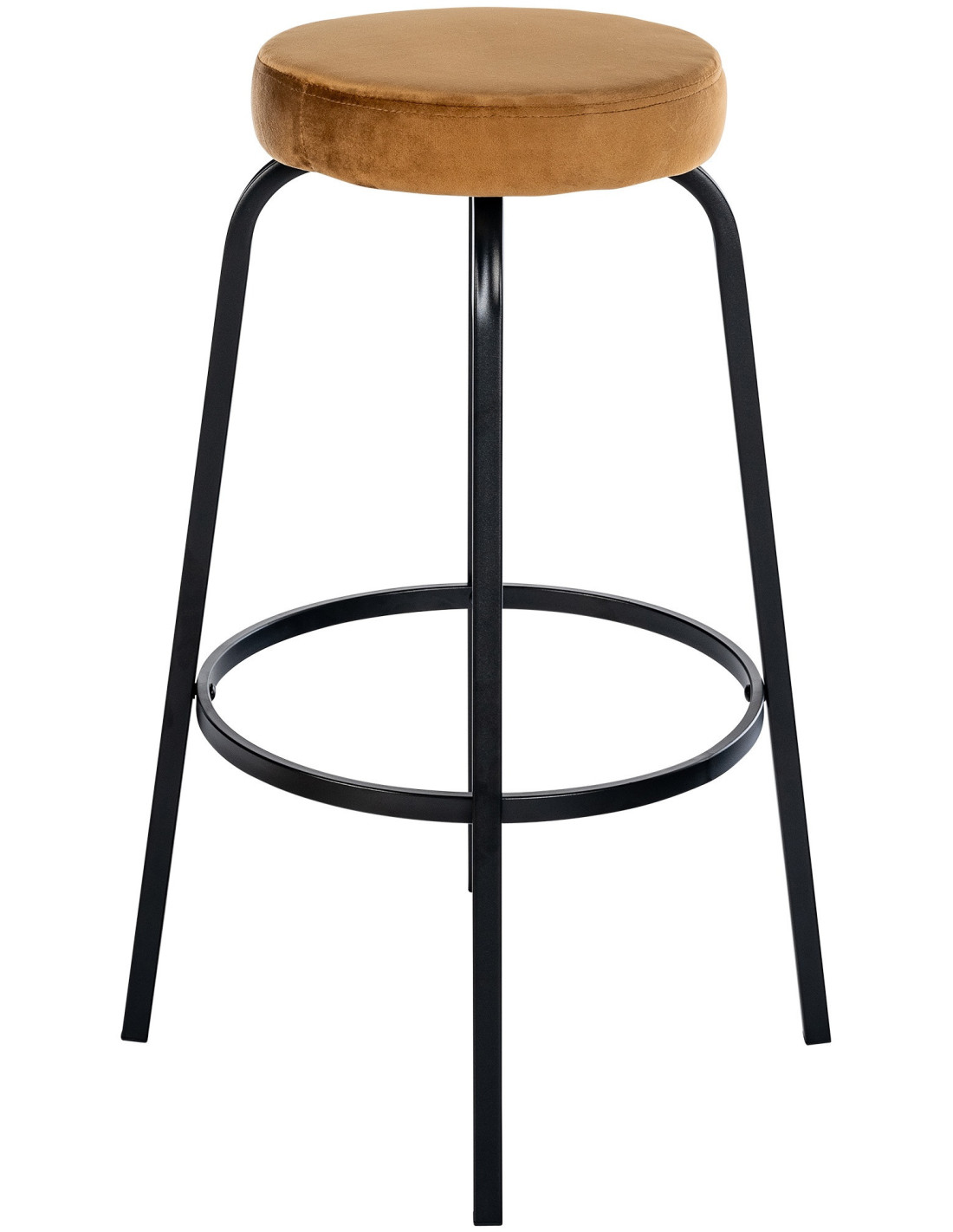 Tabouret de bar rond en Velours Marron café Métal Noir Cyanor