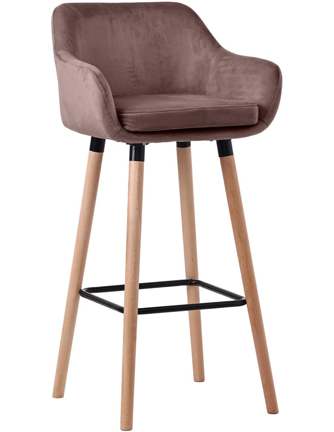 Tabouret de bar scandinave en Velours Marron café Bois de hêtre Naturel Norvyn - 1