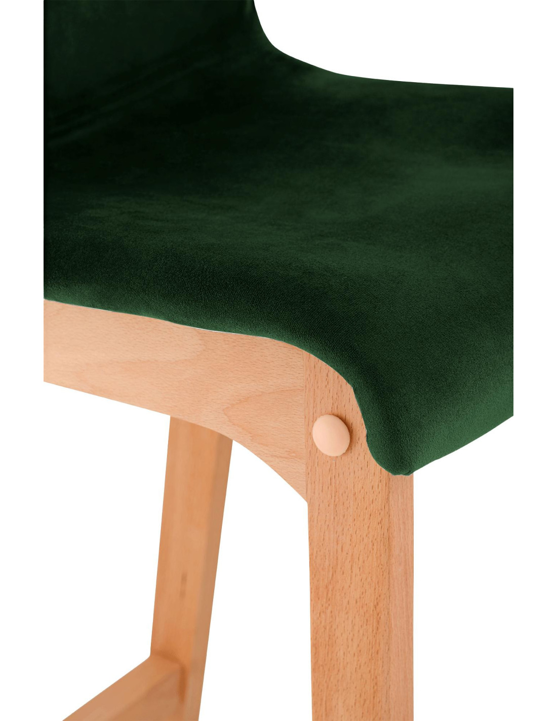 Tabouret de bar scandinave Velours Vert Bois de hêtre Naturel Ociel - 3