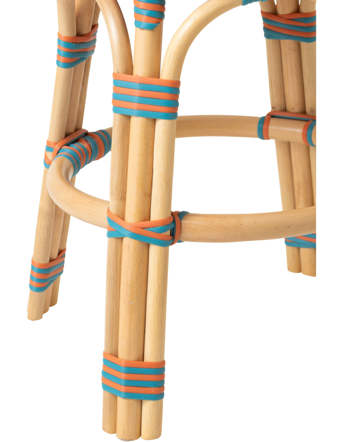Tabouret de jardin Bistrot bohème Rond H 46 cm Rotin Naturel Plastique Orange Bleu turquoise Geo