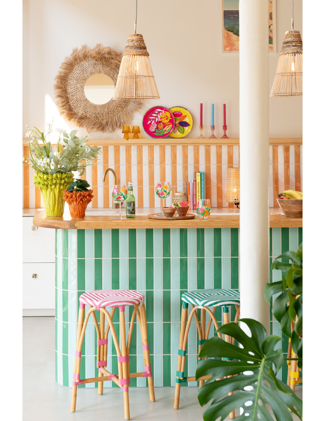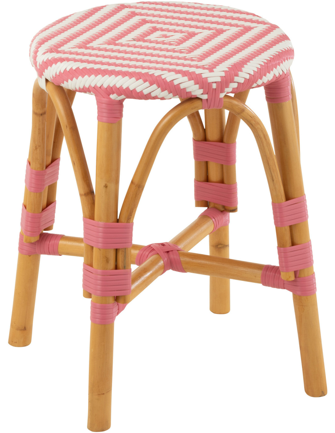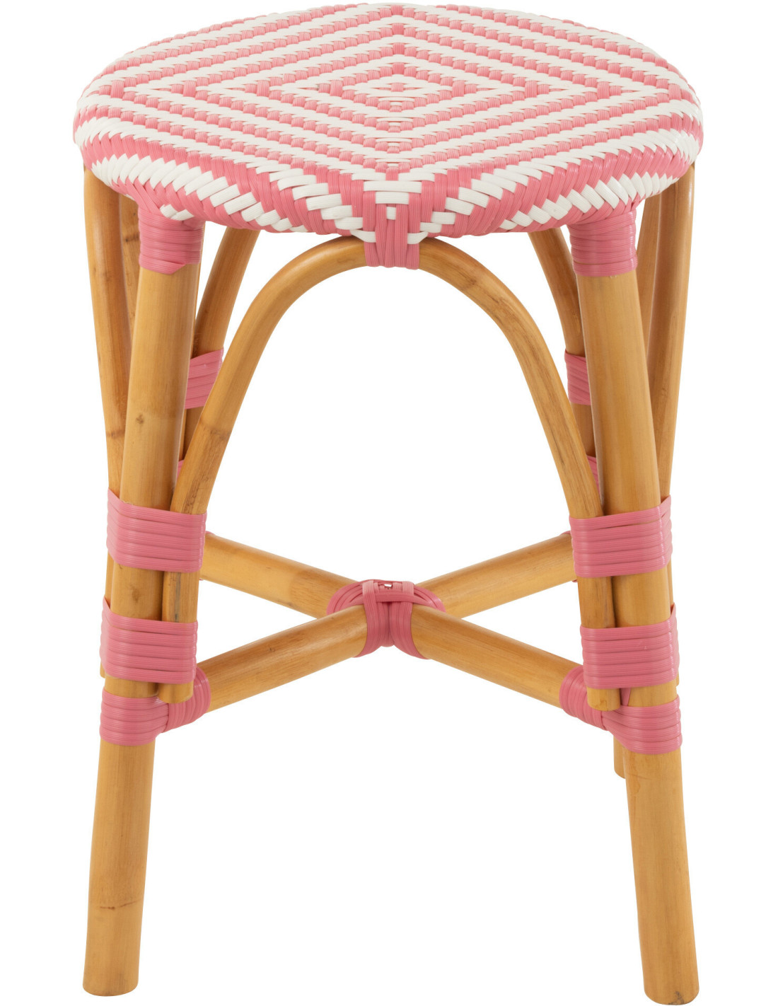 Tabouret extérieur rond en Rotin Naturel Plastique Rose Blanc Live