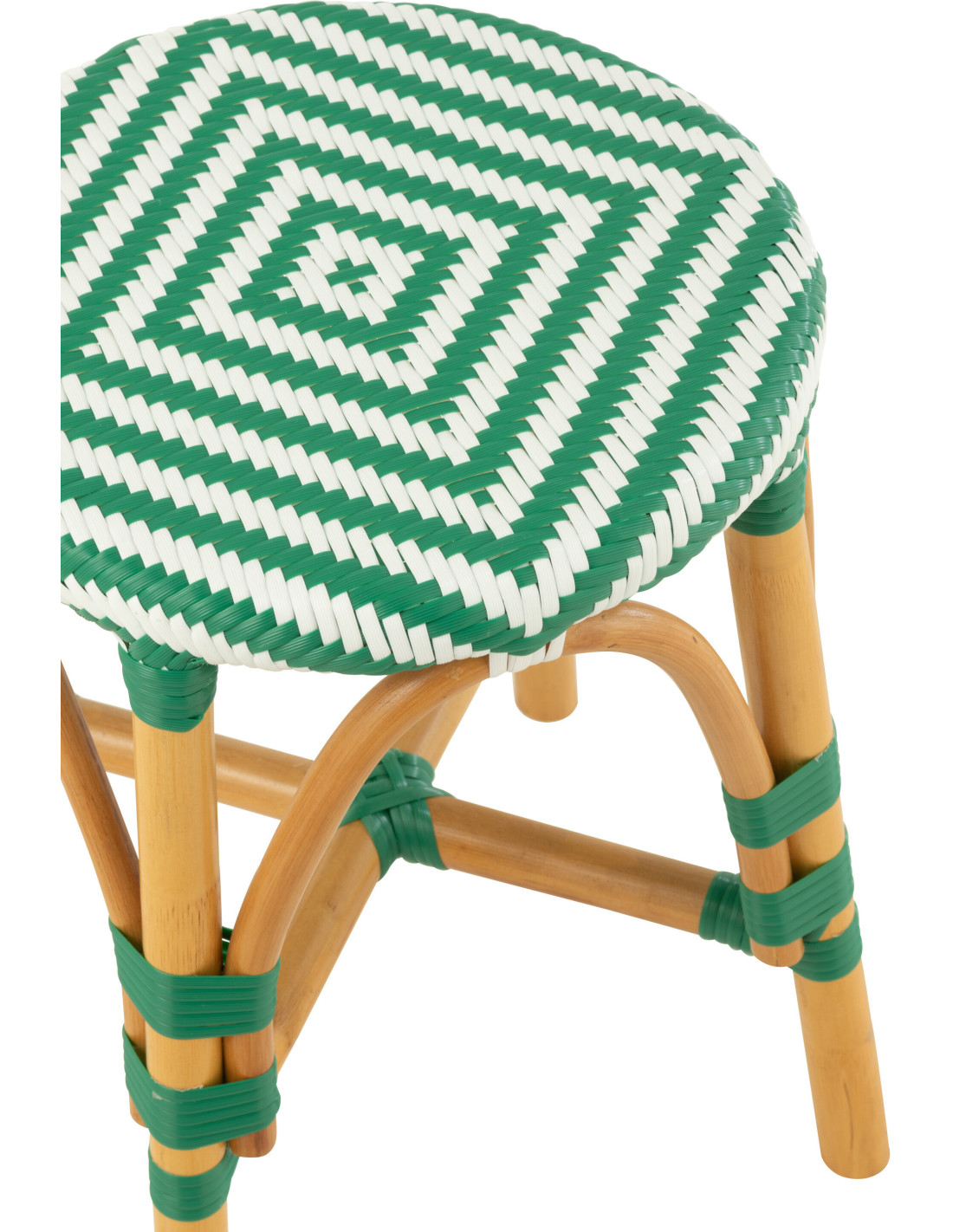 Tabouret extérieur rond en Rotin Naturel Plastique Vert Blanc Live