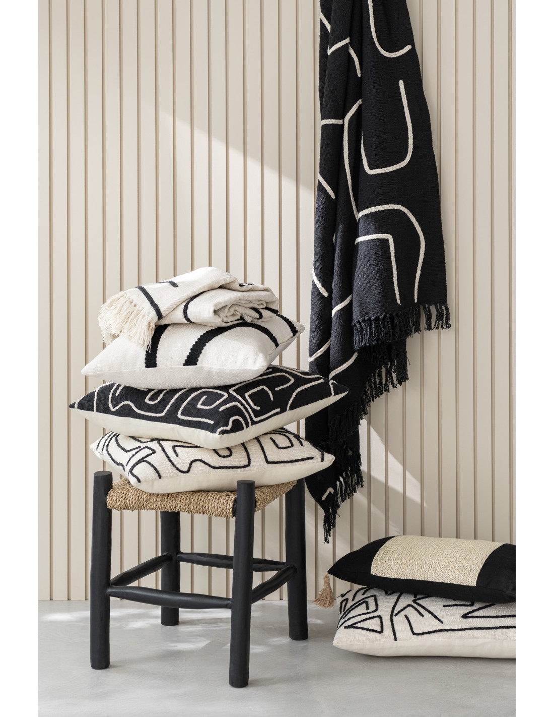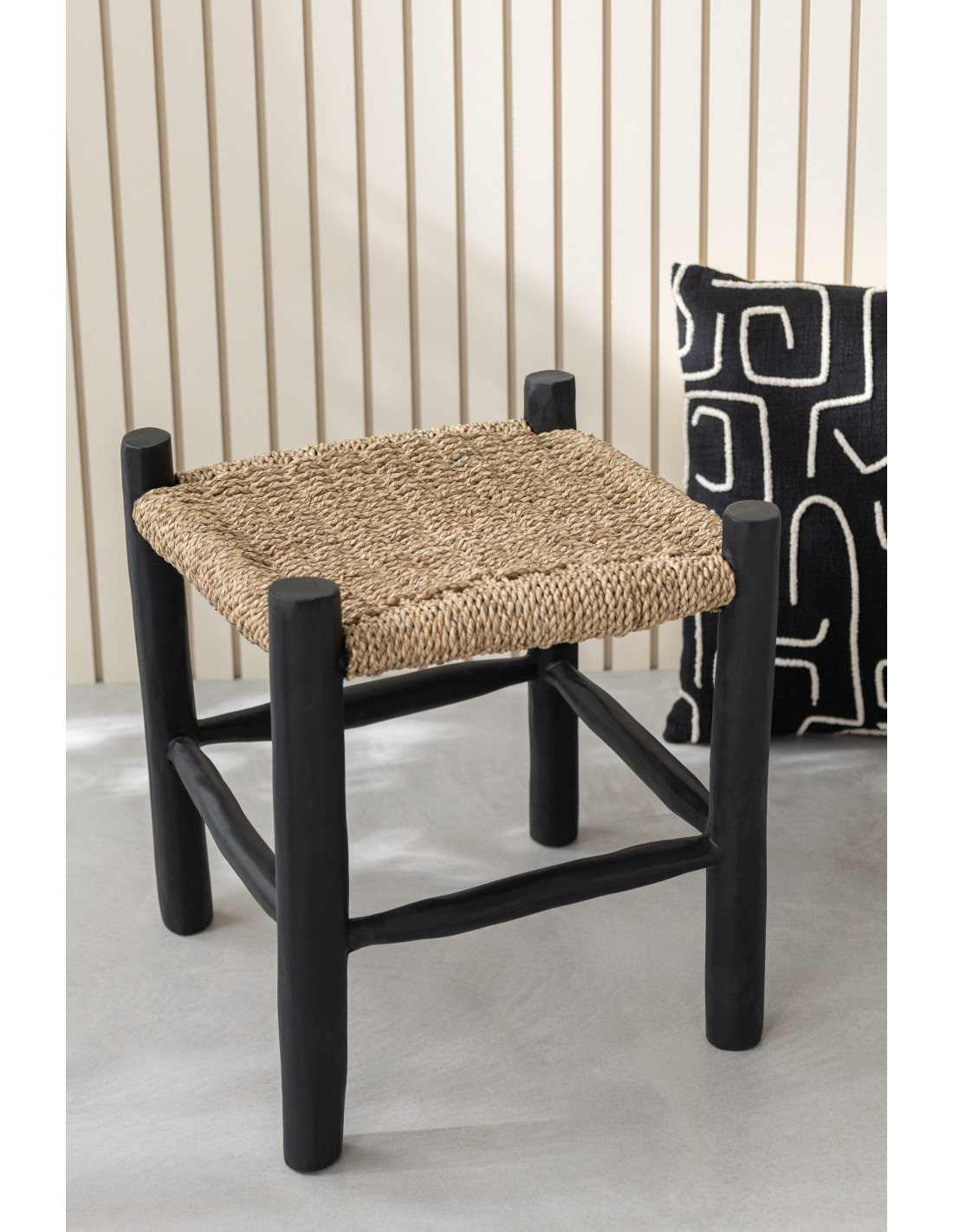 Tabouret japandi carré en Bois de teck Noir Jonc de mer Naturel Sumo