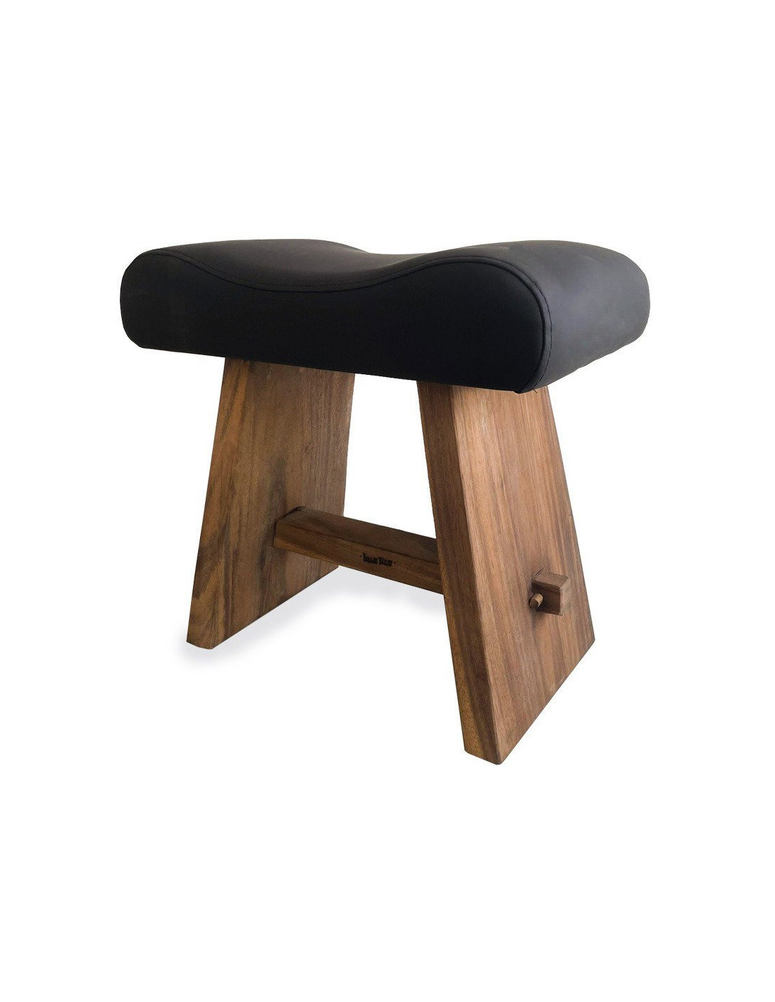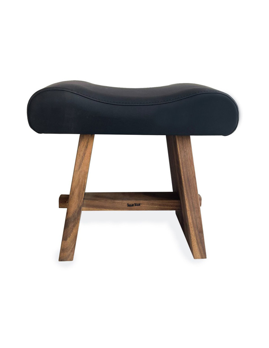 Tabouret moderne Rectangulaire en Bois de suar Naturel Cuir véritable Noir The Suar