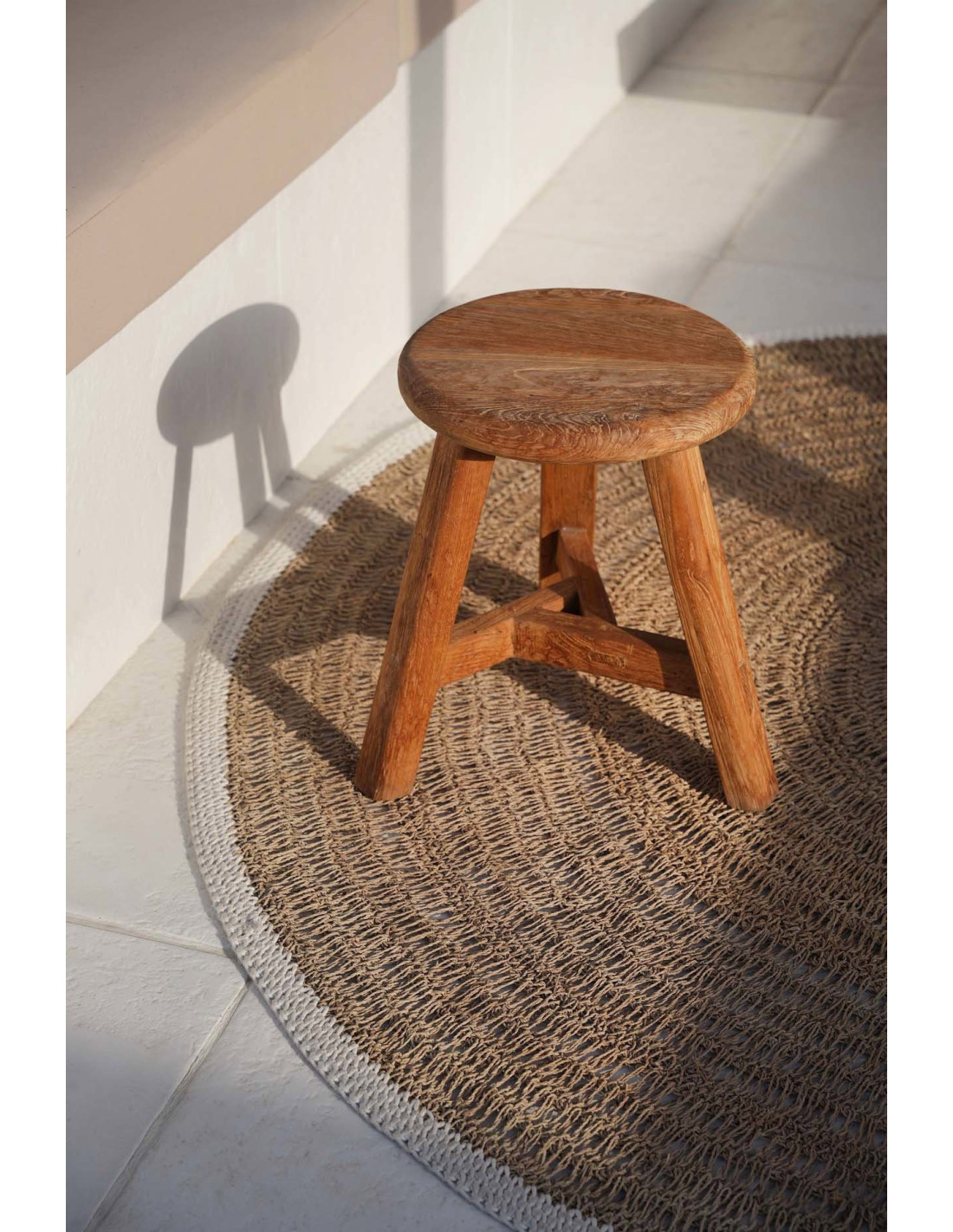 Tabouret moderne Rond en Bois de teck recyclé Naturel The Noguchi